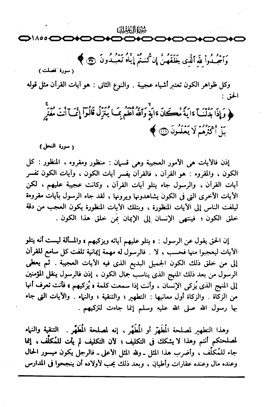 إذن فالآيات هي الأمور العجيبة وهي قسمان: منظور ومقروء، المنظور: كل الكون، والمقروء: هو القرآن، فالقرآن يفسر آيات الكون، وآيات الكون تفسر آيات القرآن، والرسول جاء يتلو آيات القرآن، وكانت عجيبة عليهم، لكن الآيات الأخرى التي في الكون يشاهدونها ويرونها، لقد جاء الرسول بآيات مقروءة ليلفت الناس إلى الآيات المنظورة، وبتلك الآيات المنظورة يكون العجب من دقة خلق الكون؛ فينتهي الإنسان إلى الإيمان بِمَن خلق هذا الكون.