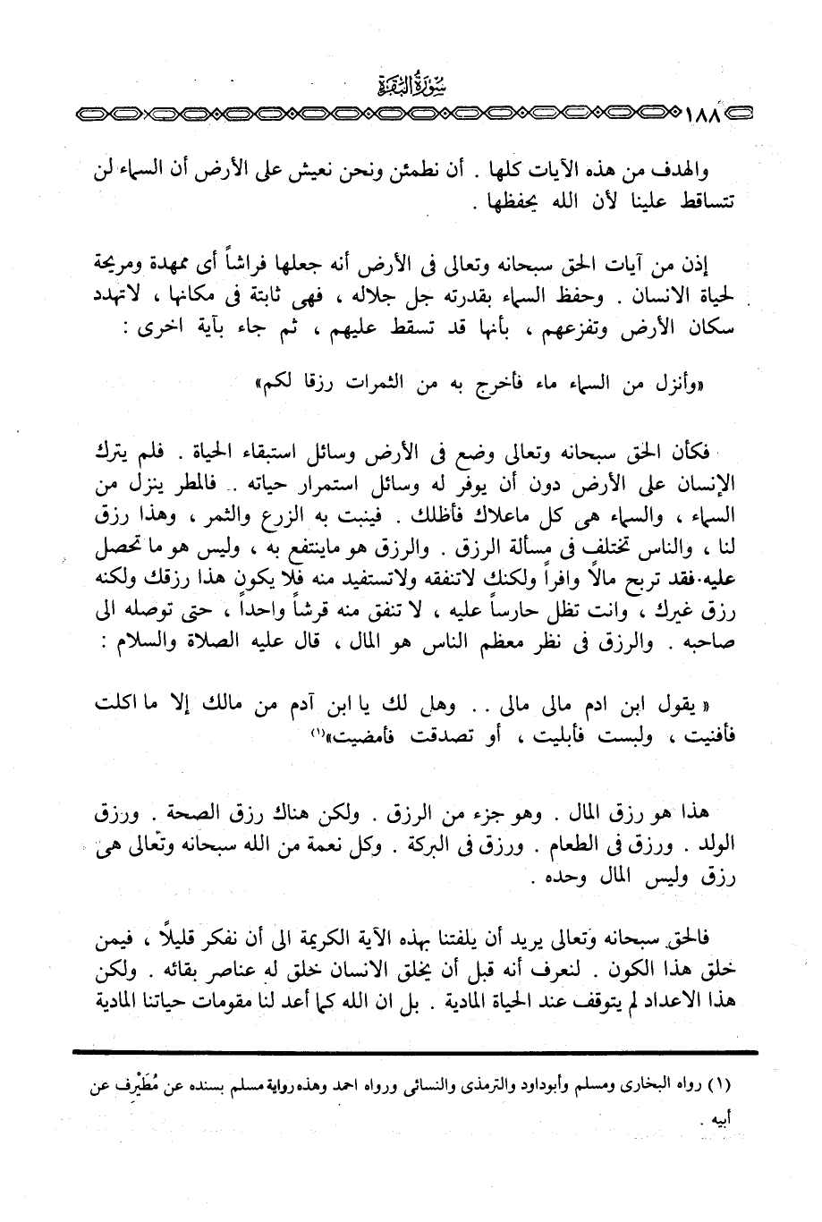 فكأن الحق سبحانه وتعالى وضع في الأرض وسائل استبقاء الحياة. فلم يترك الإنسان على الأرض دون أن يوفر له وسائل استمرار حياته. فالمطر ينزل من السماء، والسماء هي كل ما علاك فأظلك. فينبت به الزرع والثمر، وهذا رزق لنا، والناس تختلف في مسألة الرزق. والرزق هو ما ينتفع به، وليس هو ما تحصل عليه. فقد تربح مالاً وافراً ولكنك لا تنفقه ولا تستفيد منه فلا يكون هذا رزقك ولكنه رزق غيرك، وأنت تظل حارساً عليه، لا تنفق منه قرشاً واحداً، حتى توصله إلى صاحبه. والرزق في نظر معظم الناس هو المال، قال عَلَيْهِ الصَّلَاة وَالسَّلَام ُ: