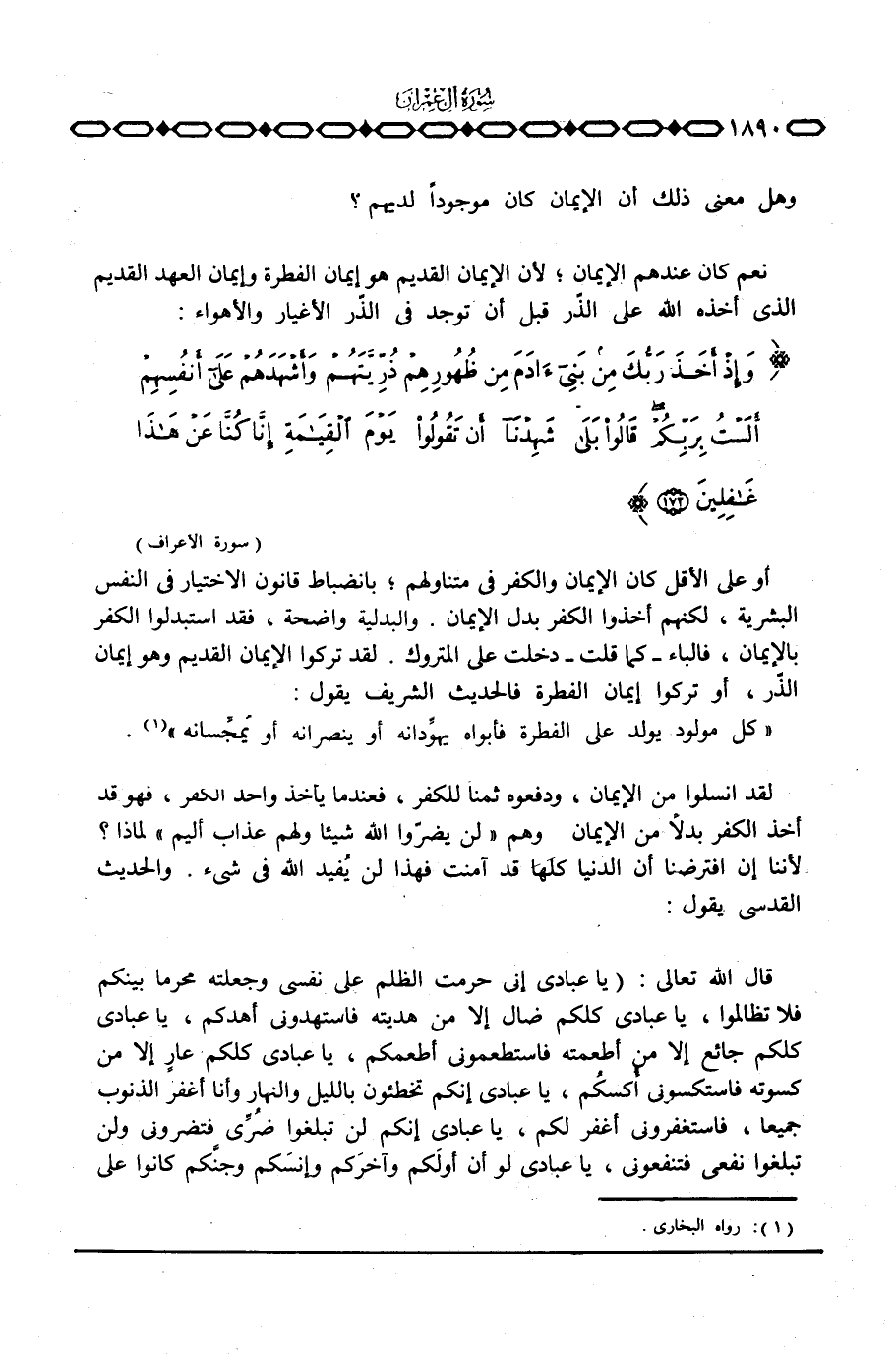 أو على الأقل كان الإيمان والكفر في متناولهم؛ بانضباط قانون الاختيار في النفس البشرية، لكنهم أخذوا الكفر بدل الإيمان. والبدلية واضحة، فقد استبدلوا الكفر بالإيمان، فالباء - كما قلت - دخلت على المتروك. لقد تركوا الإيمان القديم وهو إيمان الذّر، أو تركوا إيمان الفطرة فالحديث الشريف يقول: «كل مولود يولد على الفطرة فأبواه يهودانه أو ينصرانه أو يمجِّسانه» .