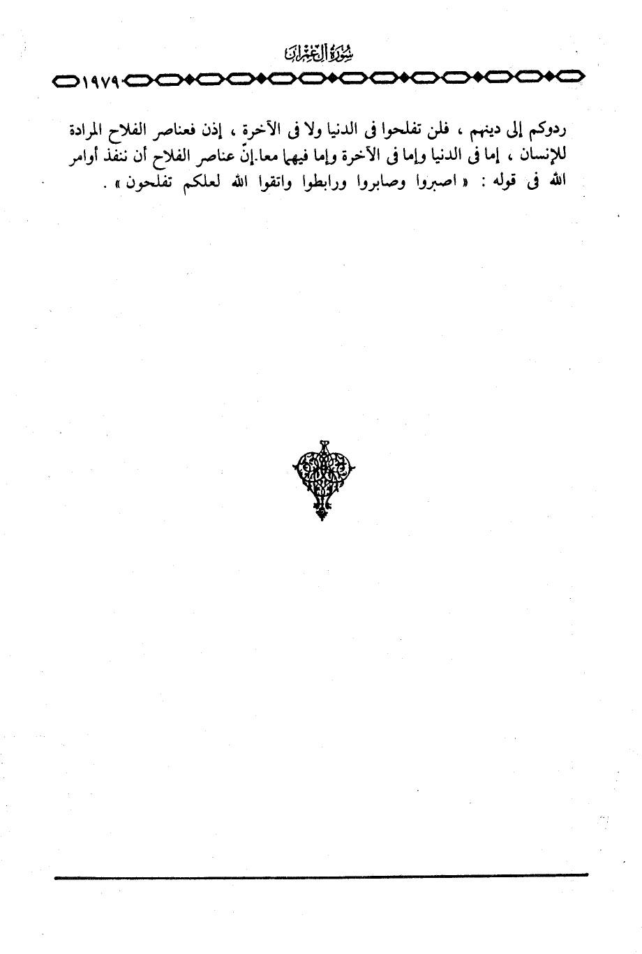ردوكم إلى دينهم، فلن تفلحوا في الدنيا ولا في الآخرة، إذن فعناصر الفلاح المرادة للإنسان، إما في الدنيا وإما في الآخرة وإما فيهما معا إنّ عناصر الفلاح أن ننفذ أوامر الله في قوله: {اصبروا وَصَابِرُواْ وَرَابِطُواْ واتقوا الله لَعَلَّكُمْ تُفْلِحُونَ} .