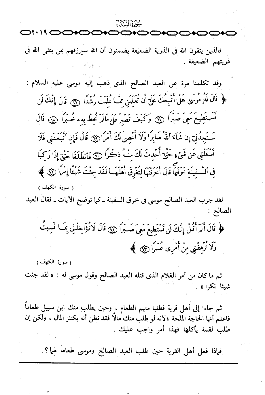 فماذا فعل أهل القرية حين طلب العبد الصالح وموسى طعاما لهما؟