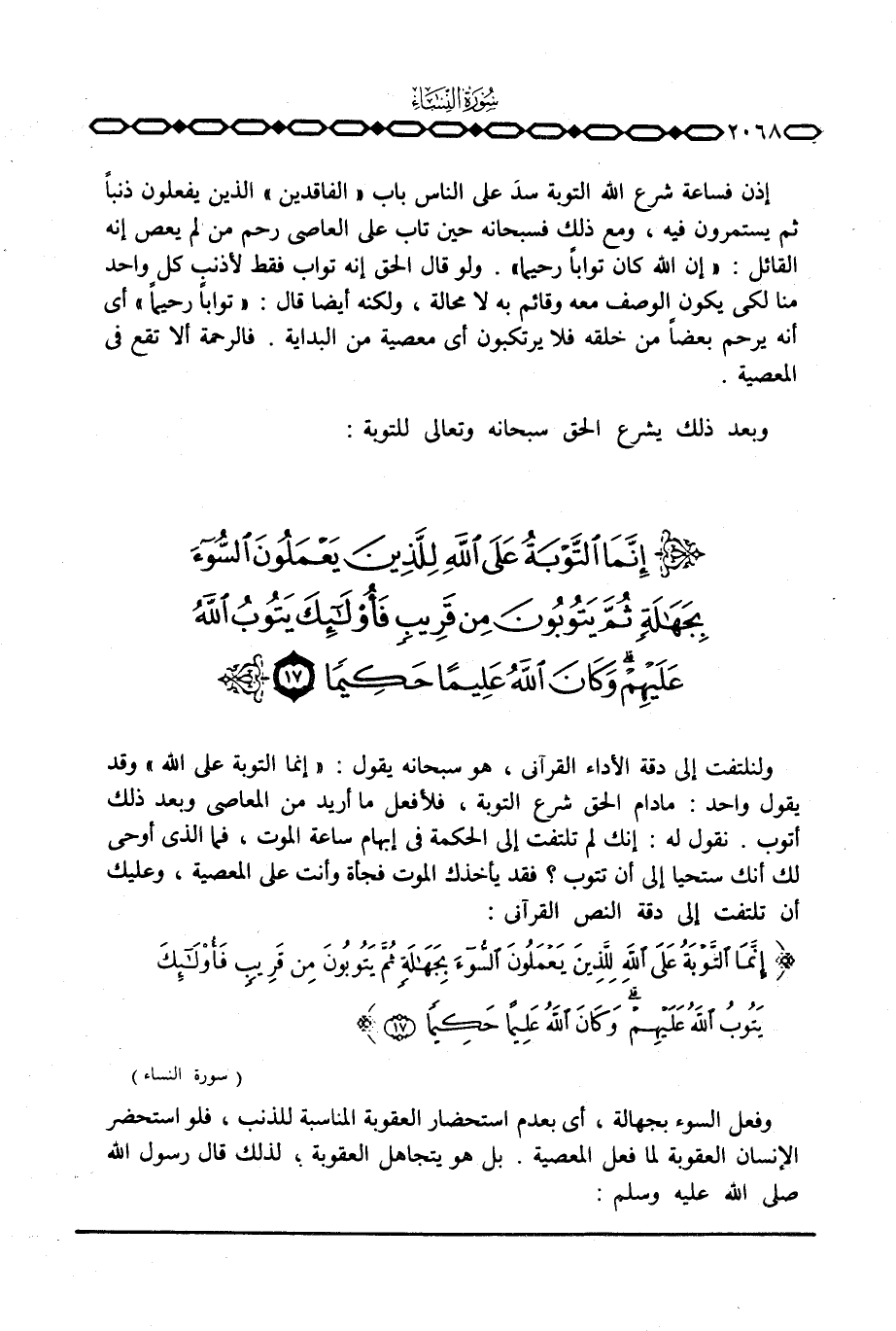 {إِنَّمَا التوبة عَلَى الله لِلَّذِينَ يَعْمَلُونَ السواء بِجَهَالَةٍ ثُمَّ يَتُوبُونَ مِن قَرِيبٍ فأولئك يَتُوبُ الله عَلَيْهِمْ وَكَانَ الله عَلِيماً حَكِيماً} [النساء: 17] .