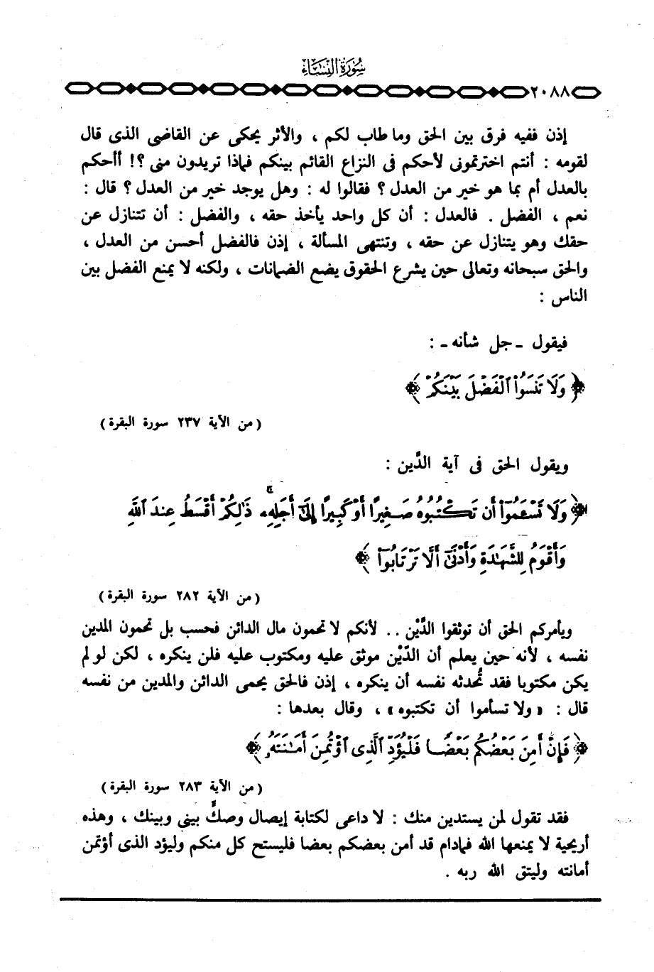 فقد تقول لمن يستدين منك: لا داعي لكتابة إيصال وصكٍّ بيني وبينك، وهذه أريحية لا يمنعها الله فما دام قد أمن بعضكم بعضا فليستح كل منكم وليؤد الذي أؤتمن أمانته وليتق الله ربه.