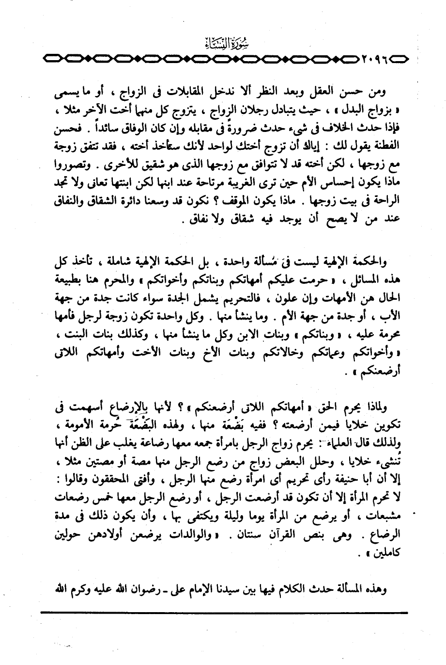 وهذه المسألة حدث الكلام فيها بين سيدنا الإمام علي - رضوان الله عليه وكرم الله