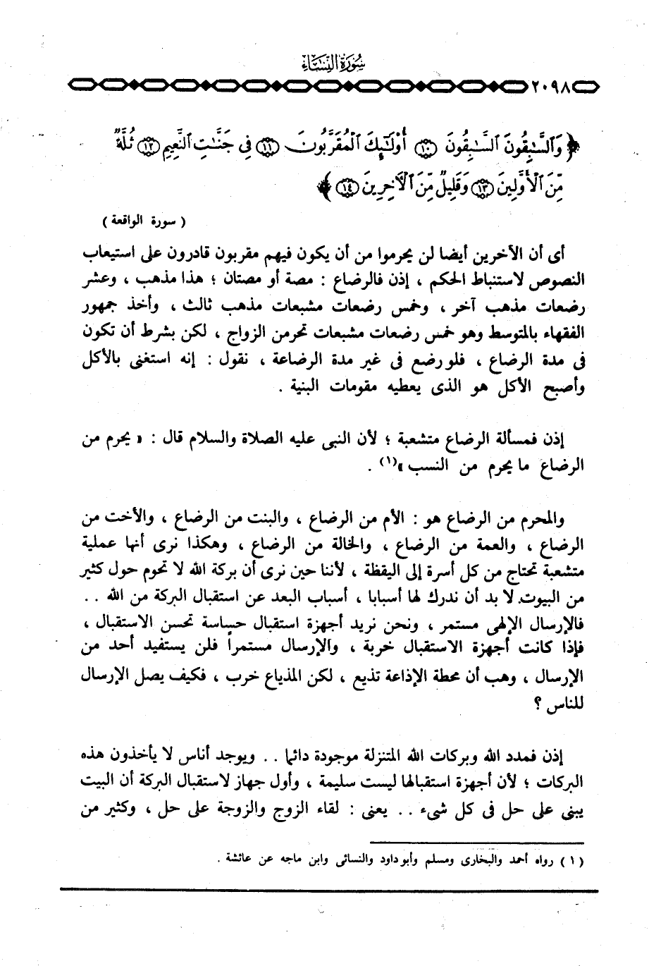 إذن فمسألة الرضاع متشعبة؛ لأن النبي عَلَيْهِ الصَّلَاة وَالسَّلَام ُ قال: «يحرم من الرضاع ما يحرم من النسب» .