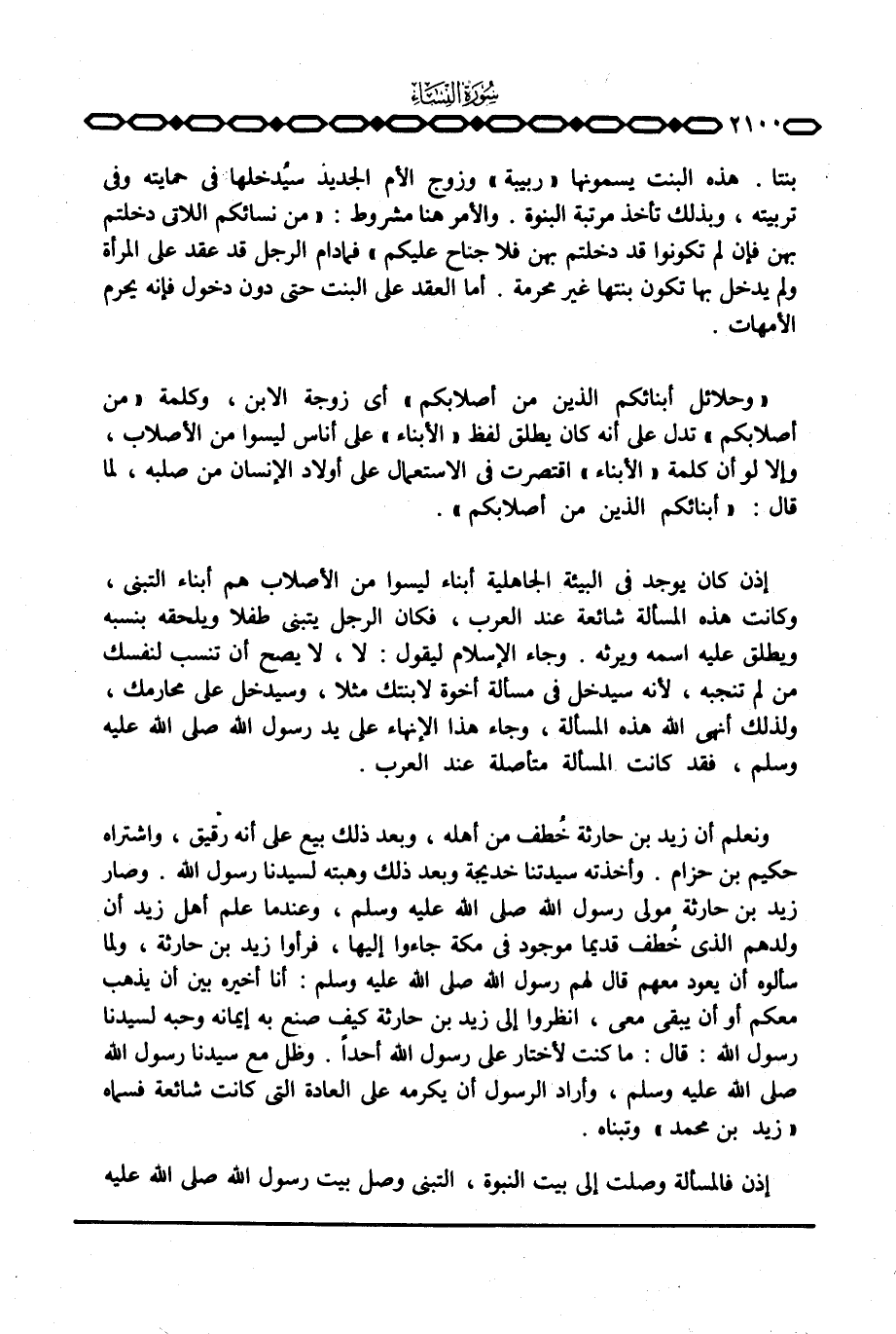 إذن كان يوجد في البيئة الجاهلية أبناء ليسوا من الأصلاب هم أبناء التبني، وكانت هذه المسألة شائعة عند العرب، فكان الرجل يتبنى طفلا ويلحقه بنسبه ويطلق عليه اسمه ويرثه. وجاء الإسلام ليقول: لا، لا يصح أن تنسب لنفسك من لم تنجبه، لأنه سيدخل في مسألة أخوة لابنتك مثلا، وسيدخل على محارمك، ولذلك أنهى الله هذه المسألة، وجاء هذا الإنهاء على يد رسول الله صَلَّى اللَّهُ عَلَيْهِ وَسَلَّم َ، فقد كانت المسألة متأصلة عند العرب.