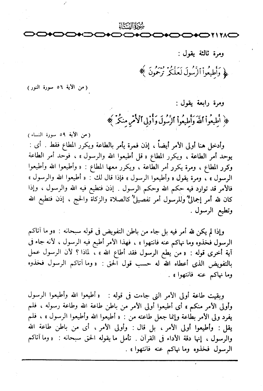 إذن فتطيع فيه الله والرسول، وإذا كان الله أمر إجماليٌّ وللرسول أمر تفصيليٌّ كالصلاة والزكاة والحج، إذن فتطيع الله وتطيع الرسول.