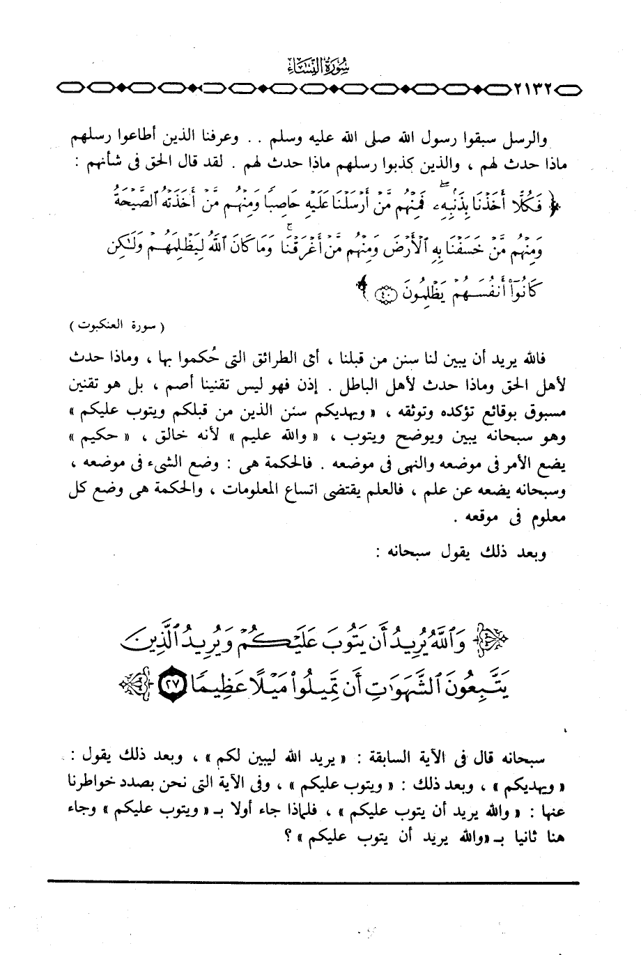 سبحانه قال في الآية السابقة: {يُرِيدُ الله لِيُبَيِّنَ لَكُمْ} ، وبعد ذلك يقول: {وَيَهْدِيَكُمْ} ، وبعد ذلك: {يَتُوبَ عَلَيْكُمْ} ، وفي الآية التي نحن بصدد خواطرنا عنها: {والله يُرِيدُ أَن يَتُوبَ عَلَيْكُمْ} ، فلماذا جاء أولا ب {يَتُوبَ عَلَيْكُمْ} وجاء هنا ثانيا ب {والله يُرِيدُ أَن يَتُوبَ عَلَيْكُمْ} ؟
