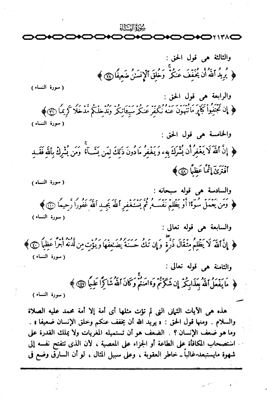 {يُرِيدُ الله أَن يُخَفِّفَ عَنْكُمْ وَخُلِقَ الإنسان ضَعِيفاً} [النساء: 28] . والرابعة هي قول الحق: {إِن تَجْتَنِبُواْ كَبَآئِرَ مَا تُنْهَوْنَ عَنْهُ نُكَفِّرْ عَنْكُمْ سَيِّئَاتِكُمْ وَنُدْخِلْكُمْ مُّدْخَلاً كَرِيماً} [النساء: 31] .