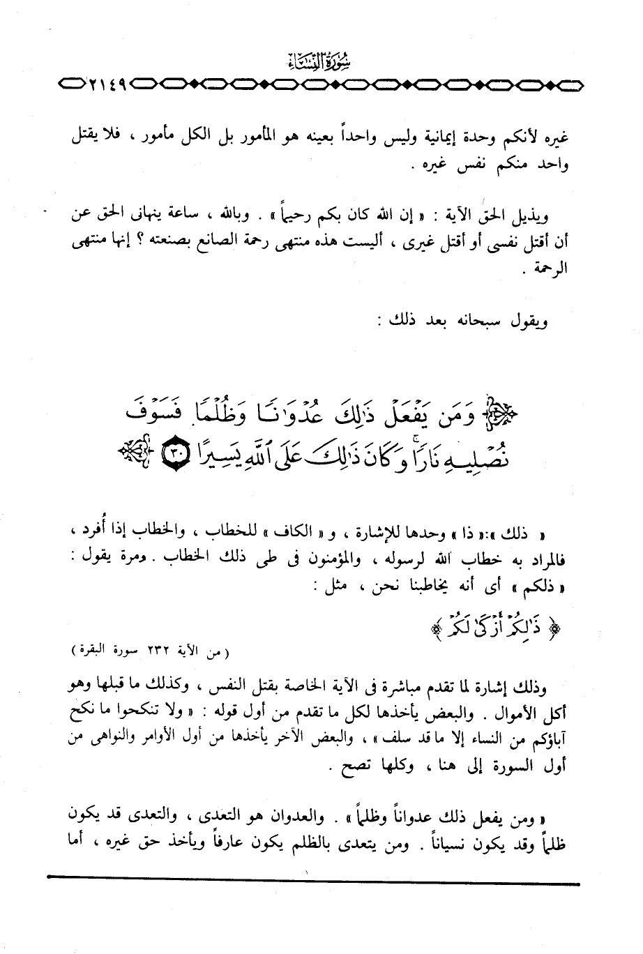ويذيل الحق الآية: {إِنَّ الله كَانَ بِكُمْ رَحِيماً} . وبالله، ساعة ينهاني الحق عن أن أقتل نفسي أو أقتل غيري، أليست هذه منتهي رحمة الصانع بصنعته؟ إنها منتهى الرحمة.