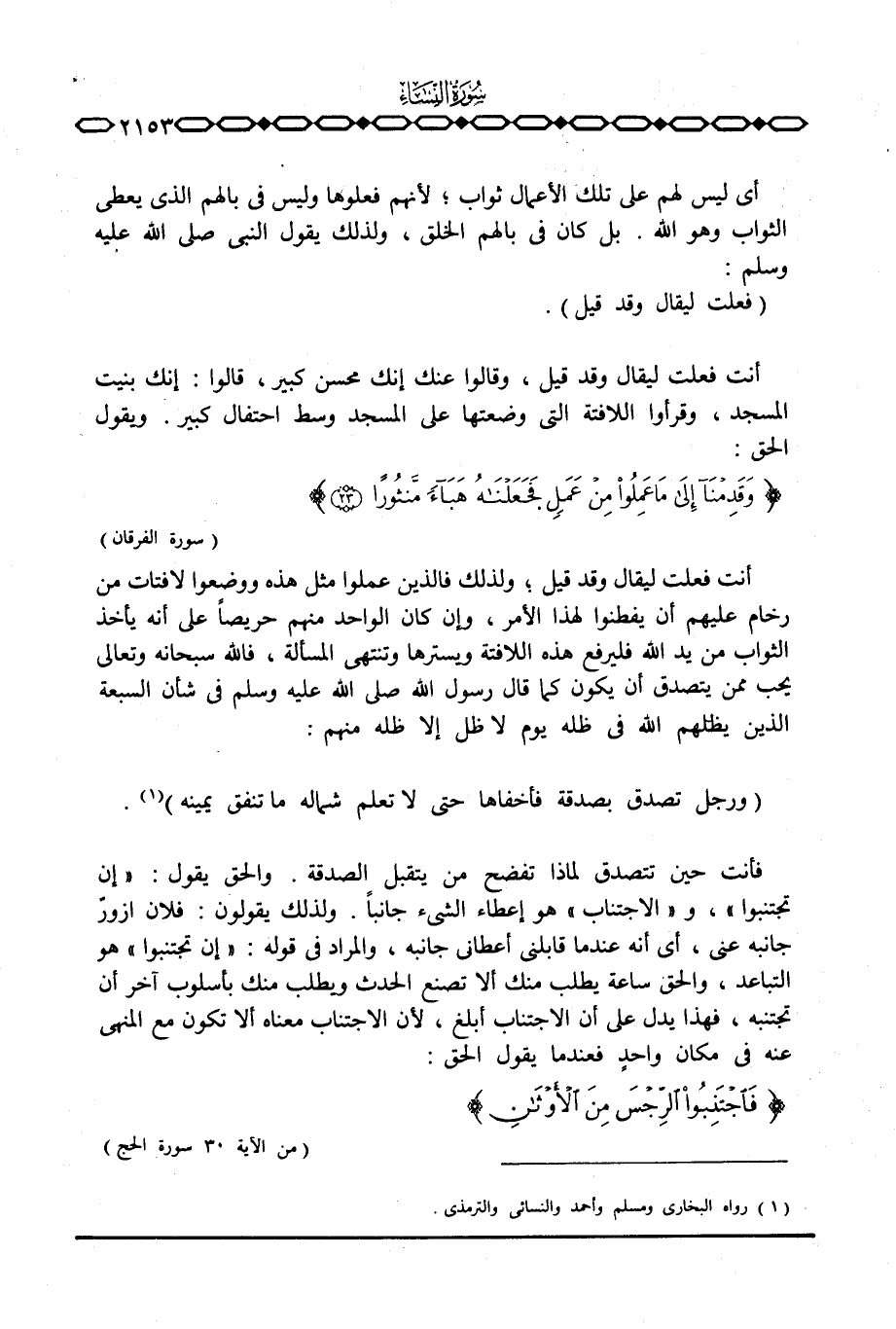 أنت فعلت ليقال وقد قيل، وقالوا عنك إنك محسن كبير، قالوا: إنك بنيت المسجد، وقرأوا اللافتة التي وضعتها على المسجد وسط احتفال كبير. ويقول الحق: {وَقَدِمْنَآ إلى مَا عَمِلُواْ مِنْ عَمَلٍ فَجَعَلْنَاهُ هَبَآءً مَّنثُوراً} [الفرقان: 23] .