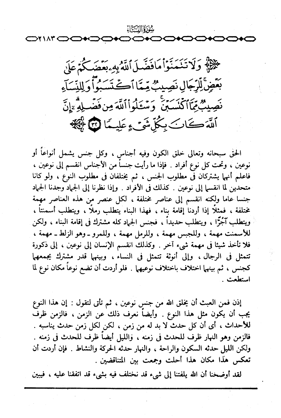 {وَلاَ تَتَمَنَّوْاْ مَا فَضَّلَ الله بِهِ ... } .