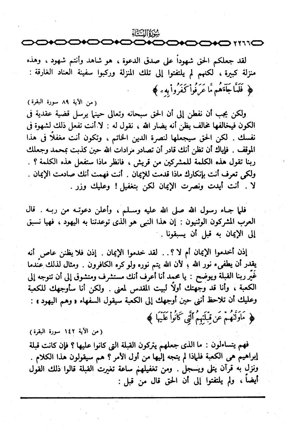ولكن يجب أن نفطن إلى أن الحق سبحانه وتعالى حينما يرسل قضية عقدية في الكون فيخالفها مخالف يظن أنه يضار الله، نقول له: لا أنت تفعل ذلك لشهوة في نفسك. لكن الحق سيجعلها لنصرة الدين الخاتم، وتكون أنت مغفلاً في هذا الموقف. فإياك أن تظن أنك قادر أن تصادر مرادات الله حين كذبت بمحمد وجعلك ربنا تقول هذه الكلمة للمشركين من قريش، فانتظر ماذا ستفعل هذه الكلمة؟ . لكي تعرف أنت بإنكارك ماذا قدمت للإيمان. أنت فهمت أنك صادمت الإيمان. لا. أنت أيدت ونصرت الإيمان لكن بتغفيل! وعليك وزر.