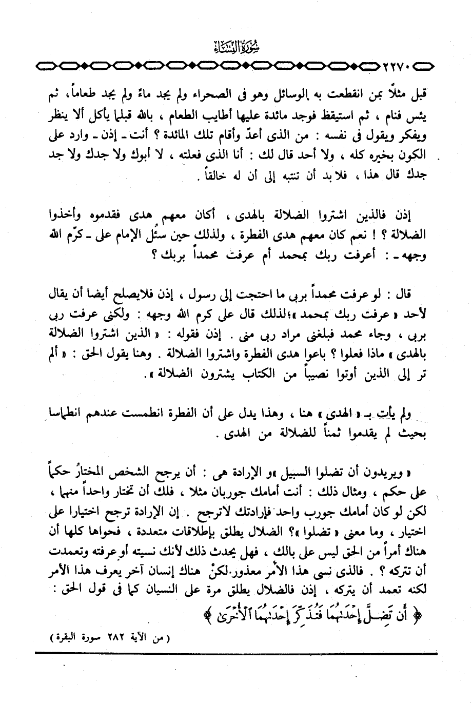 إذن فالذين اشتروا الضلالة بالهدى، أكان معهم هدى فقدموه وأخذوا الضلالة؟} نعم كان معهم هدى الفطرة، ولذلك حين سئل الإمام علي - كرّم الله وجهه -: أعرفت ربك بمحمد أم عرفت محمداً بربك؟