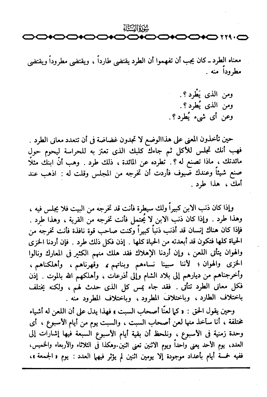 معناه الطرد - كان يجب أن تفهموا أن الطرد يقتضي طارداً، ويقتضي مطروداً ويقتضي مطروداً منه.