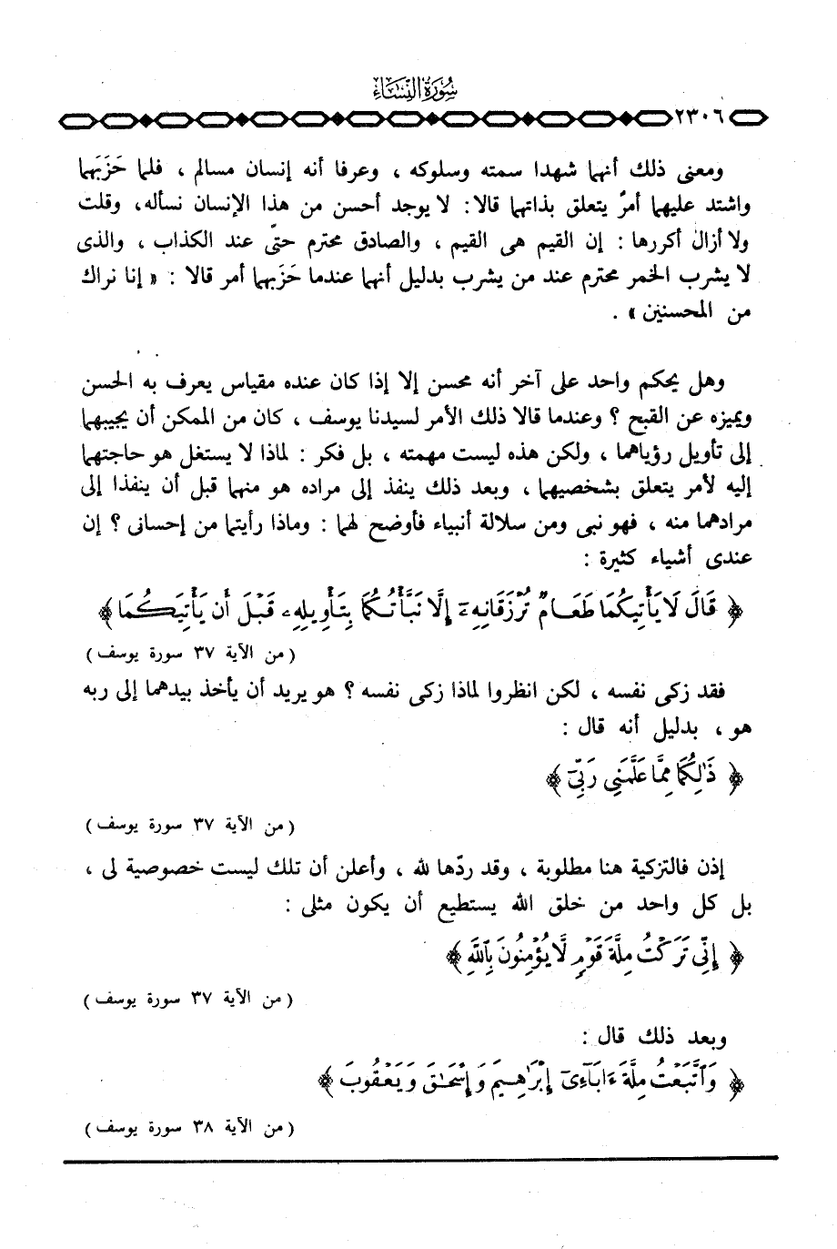 إذن فالتزكية هنا مطلوبة، وقد ردّها لله، وأعلن أن تلك ليست خصوصية لي، بل كل واحد من خلق الله يستطيع أن يكون مثلي: {إِنِّي تَرَكْتُ مِلَّةَ قَوْمٍ لاَّ يُؤْمِنُونَ بالله} [يوسف: 37] .