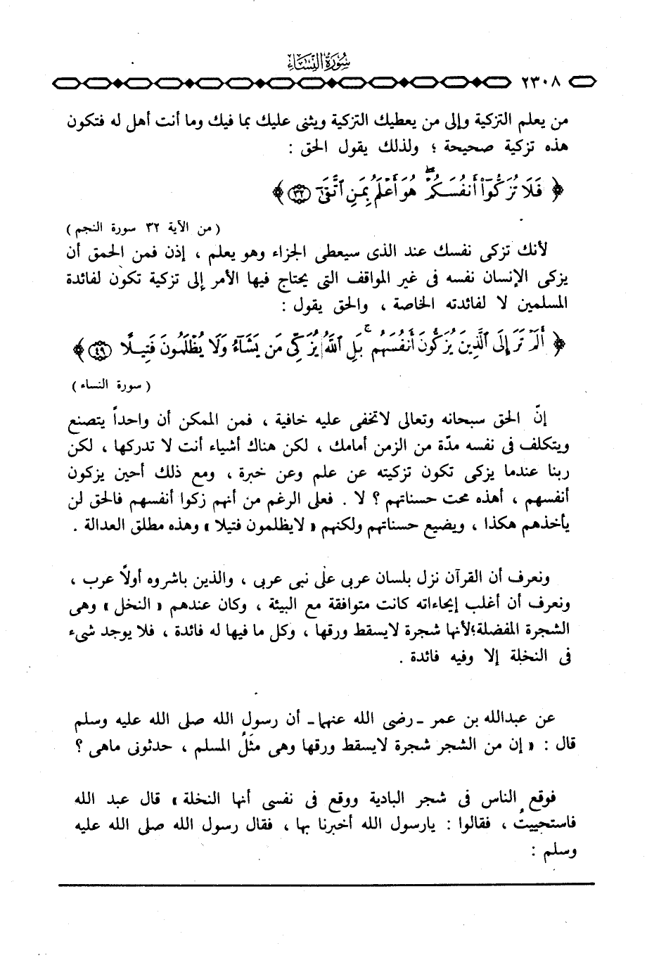 {أَلَمْ تَرَ إِلَى الذين يُزَكُّونَ أَنْفُسَهُمْ بَلِ الله يُزَكِّي مَن يَشَآءُ وَلاَ يُظْلَمُونَ فَتِيلاً} [النساء: 49] .
