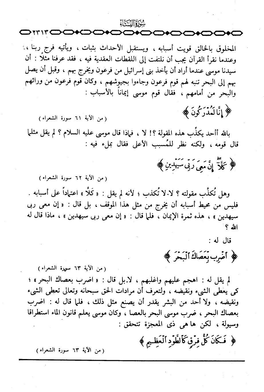 وهل تُكذَّب مقولته؟ لا لا تُكذب؛ لأنه لم يقل: «كَلاَّ» اعتماداً على أسبابه. فليس من محيط أسبابه أن يخرج من مثل هذا الموقف، بل قال: {إِنَّ مَعِيَ رَبِّي سَيَهْدِينِ} ، ماذا قال له الله؟