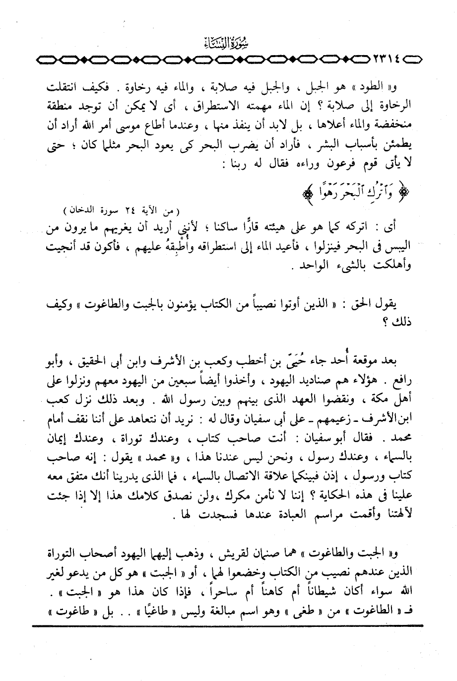 و «الجبت والطاغوت» هما صنمان لقريش، وذهب إليهما اليهود أصحاب التوراة الذين عندهم نصيب من الكتاب وخضعوا لهما، أو «الجبت» هو كل من يدعو لغير الله سواء أكان شيطاناً أم كاهناً أم ساحراً، فإذا كان هذا هو «الجبت» ف «الطاغوت» من «طغى» وهو اسم مبالغة وليس «طاغياً» .