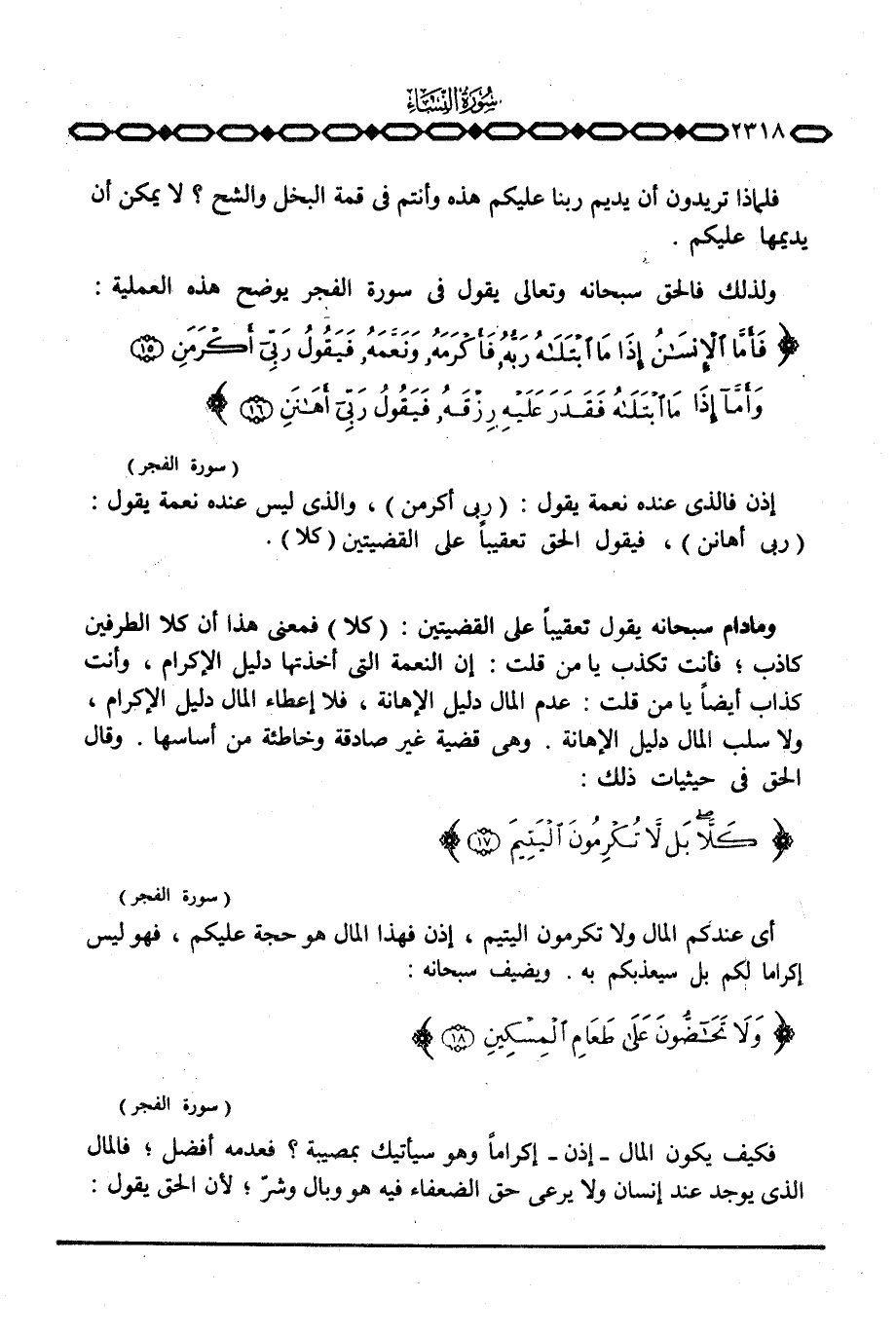 وقال الحق في حيثيات ذلك: {كَلاَّ بَل لاَّ تُكْرِمُونَ اليتيم} [الفجر: 17] .
