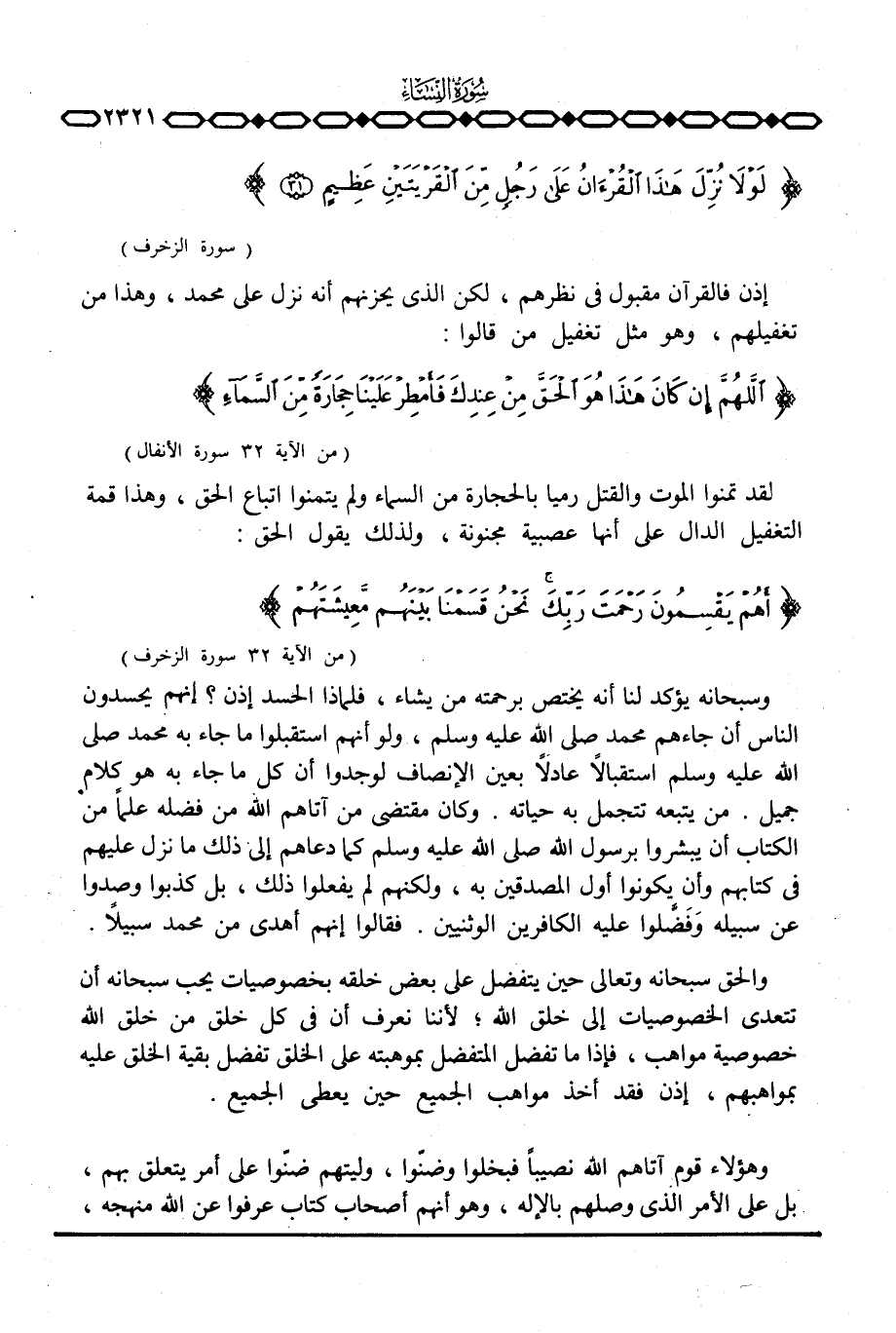 وسبحانه يؤكد لنا أنه يختص برحمته من يشاء، فلماذا الحسد إذن؟ إنهم يحسدون الناس أن جاءهم محمد صَلَّى اللَّهُ عَلَيْهِ وَسَلَّم َ، ولو أنهم استقبلوا ما جاء به محمد صَلَّى اللَّهُ عَلَيْهِ وَسَلَّم َ استقبالاً عادلاً بعين الإنصاف لوجدوا أن كل ما جاء به هو كلام جميل. من يتبعه تتجمل به حياته. وكان مقتضي من آتاهم الله من فضله علماً من الكتاب أن يبشروا برسول الله صَلَّى اللَّهُ عَلَيْهِ وَسَلَّم َ كما دعاهم إلى ذلك نزل عليهم في كتابهم وأن يكونوا أول المصدقين به، ولكنهم لم يفعلوا ذلك، بل كذبوا وصدوا عن سبيله وَفَضَّلوا عليه الكافرين الوثنيين. فقالوا إنهم أهدى من محمد سبيلاً.