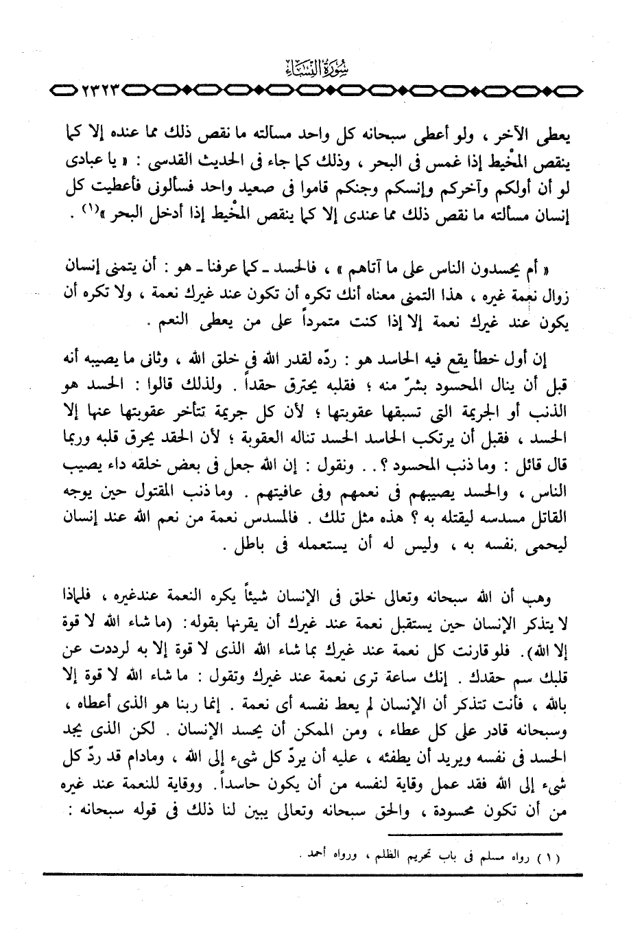 {أَمْ يَحْسُدُونَ الناس على مَآ آتَاهُمُ} ، فالحسد - كما عرفنا - هو: أن يتمنى إنسان زوال نعمة غيره، هذا التمني معناه أنك تكره أن تكون عند غيرك نعمة، ولا تكره أن يكون عند غيرك نعمة إلا إذا كنت متمرداً على من يعطي النعم.