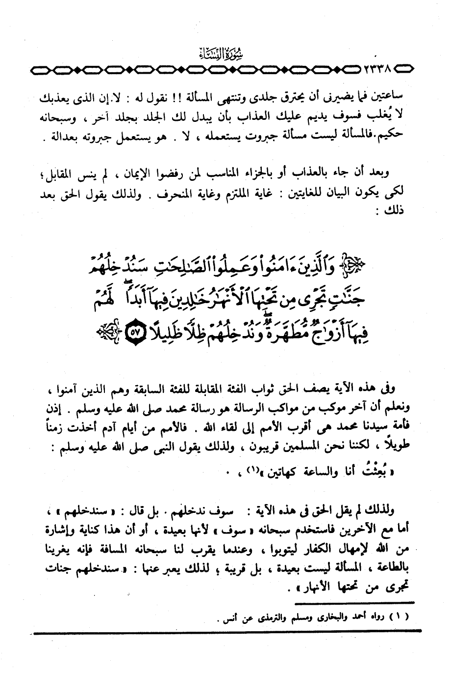 ولذلك لم يقل الحق في الآية: سوف ندخلهم. بل قال: {سَنُدْخِلُهُمْ} ، أما مع الآخرين فاستخدم سبحانه «سوف» لأنها بعيدة، أو أن هذا كناية وإشارة من الله لإمهال الكفار ليتوبوا، وعندما يقرب لنا سبحانه المسافة فإنه يغرينا بالطاعة، المسألة ليست بعيدة، بل قريبة؛ لذلك يعبر عنها: {سَنُدْخِلُهُمْ جَنَّاتٍ تَجْرِي مِن تَحْتِهَا الأنهار} .