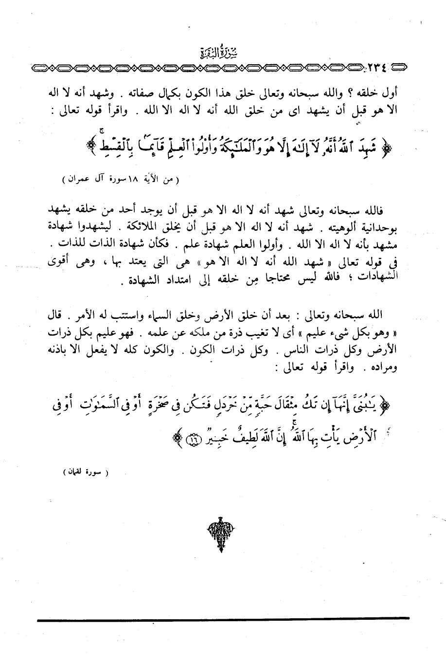 فالله سبحانه وتعالى شهد أنه لا إله إلا هو قبل أن يوجد أحد من خلقه يشهد بوحدانية ألوهيته. شهد أنه لا إله إلا هو قبل أن يخلق الملائكة. ليشهدوا شهادة مشهد بأنه لا إله إلا الله. وأولوا العلم شهادة علم. فكأن شهادة الذات للذات. في قوله تعالى {شَهِدَ الله أَنَّهُ لاَ إله إِلاَّ هُوَ} هي التي يعتد بها، وهي أقوى الشهادات؛ فالله ليس محتاجا مِن خلقه إلى امتداد الشهادة.