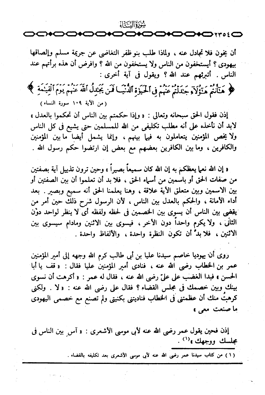 إذن فحين يقول عمر رَضِيَ اللَّهُ عَنْه لأبي موسى الأشعري:» آسِ بين الناس في مجلسك ووجهك «.