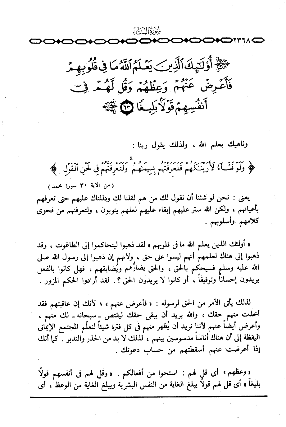 {أولئك الذين يَعْلَمُ الله مَا فِي قُلُوبِهِمْ} لقد ذهبوا ليتحاكموا إلى الطاغوت، وقد ذهبوا إلى هناك لعلمهم أنهم ليسوا على حق، ولأنهم إن ذهبوا إلى رسول الله صَلَّى اللَّهُ عَلَيْهِ وَسَلَّم َ فسيحكم بالحق، والحق يضارُّهم ويُضايقهم، فهل كانوا بالفعل يريدون إحساناً وتوفيقاً، أو كانوا لا يريدون الحق؟ . لقد أرادوا الحكم المزور.