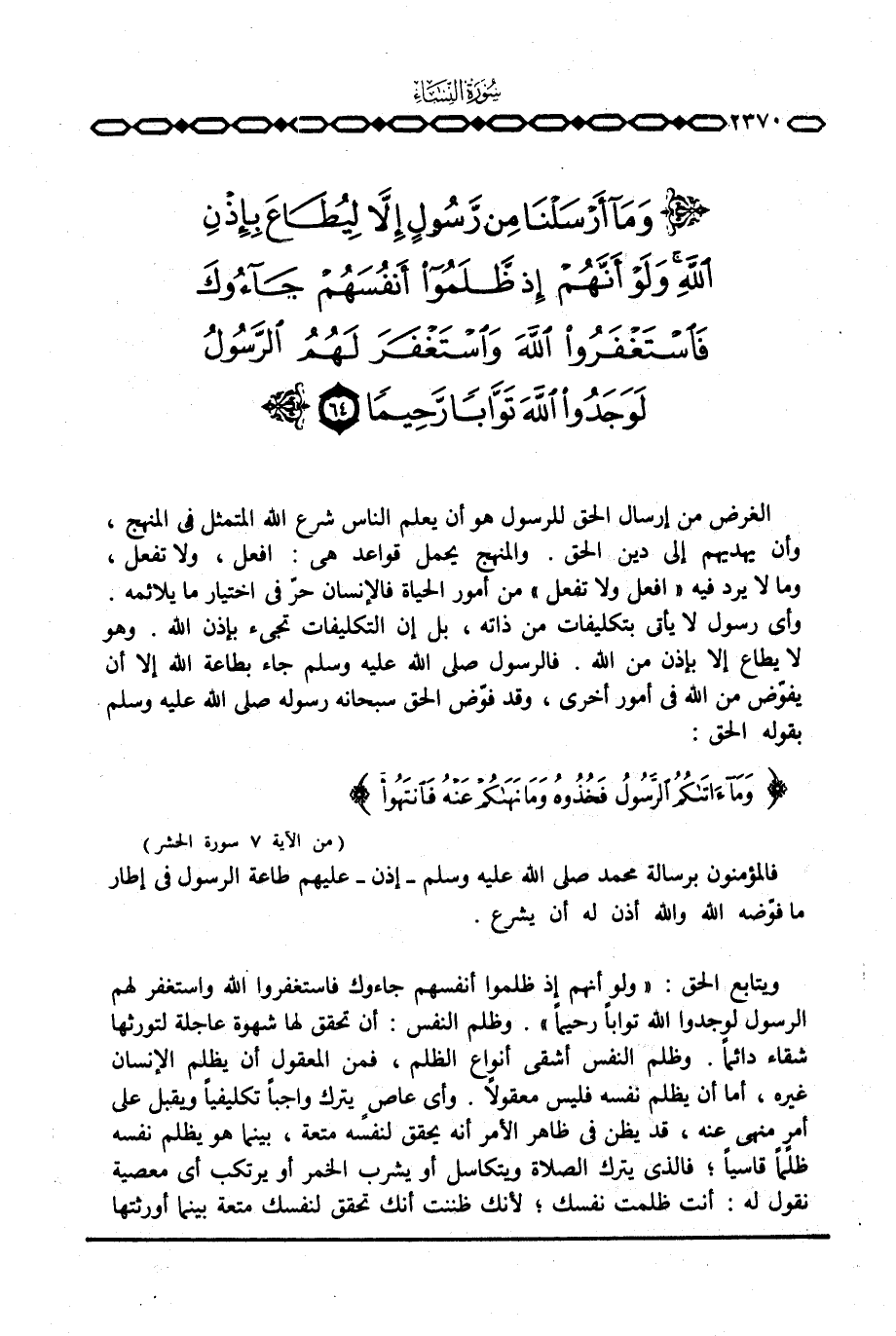 فالمؤمنون برسالة محمد صَلَّى اللَّهُ عَلَيْهِ وَسَلَّم َ - إذن - عليهم طاعة الرسول في إطار ما فوّضه الله والله أذن له أن يشرع.