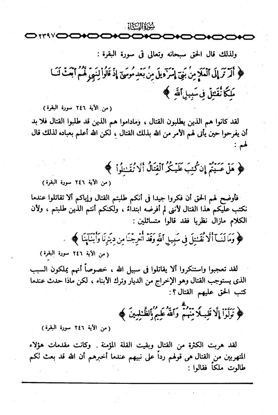 ولذلك قال الحق سبحانه وتعالى في سورة البقرة: {أَلَمْ تَرَ إِلَى الملإ مِن بني إِسْرَائِيلَ مِن بَعْدِ موسى إِذْ قَالُواْ لِنَبِيٍّ لَّهُمُ ابعث لَنَا مَلِكاً نُّقَاتِلْ فِي سَبِيلِ الله} [البقرة: 246] .