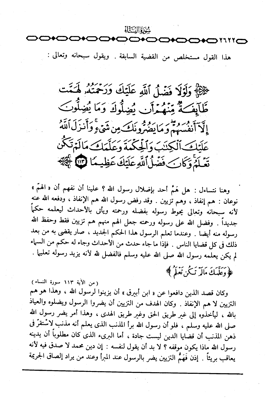 هذا القول مستخلص من القضية السابقة. ويقول سبحانه وتعالى: {وَلَوْلاَ فَضْلُ الله عَلَيْكَ وَرَحْمَتُهُ. .}