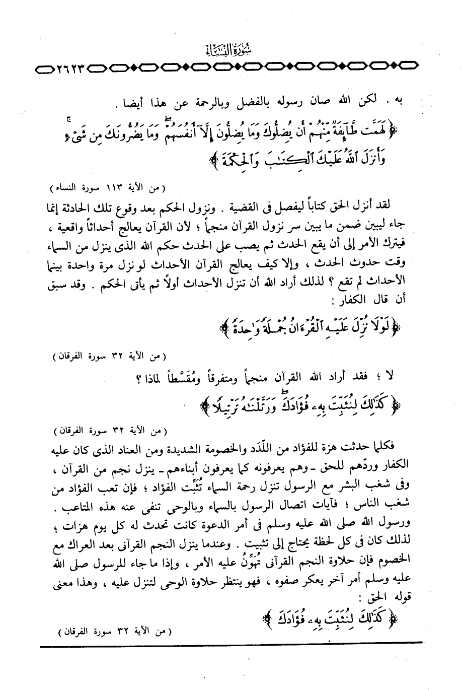فكلما حدثت هزة للفؤاد من اللّدَد والخصومة الشديدة ومن العناد الذي كان عليه الكفار وردّهم للحق - وهم يعرفونه كما يعرفون أبنائهم - ينزل نجم من القرآن، وفي شغب البشر مع الرسول تنزل رحمة السماء تُثَبِّت الفؤاد؛ فإن تعب الفؤاد من شغب الناس؛ فآيات اتصال الرسول بالسماء وبالوحي تنفي عنه هذه المتاعب.