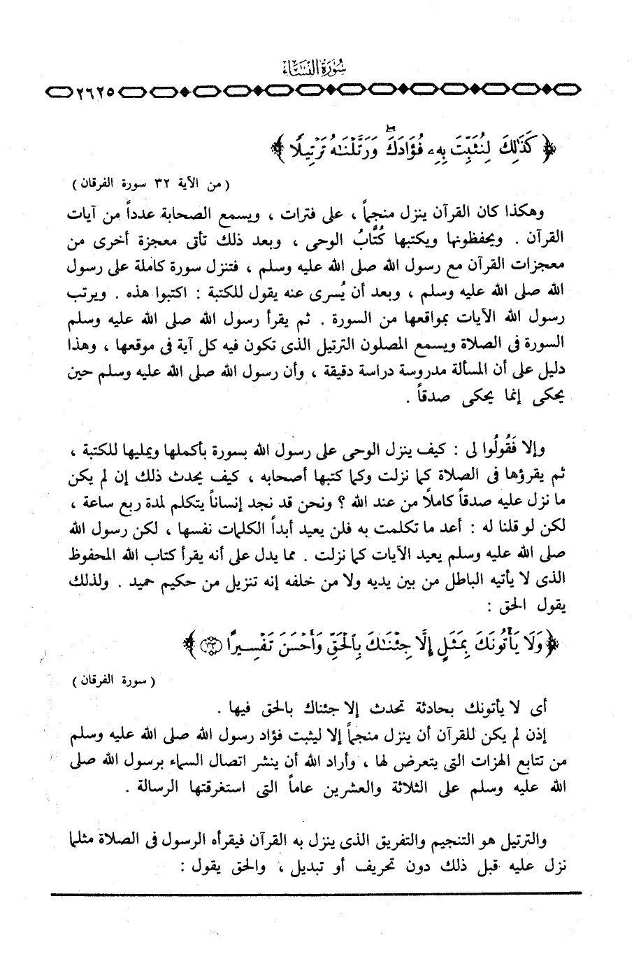 {كَذَلِكَ لِنُثَبِّتَ بِهِ فُؤَادَكَ وَرَتَّلْنَاهُ تَرْتِيلاً} [الفرقان: 32]