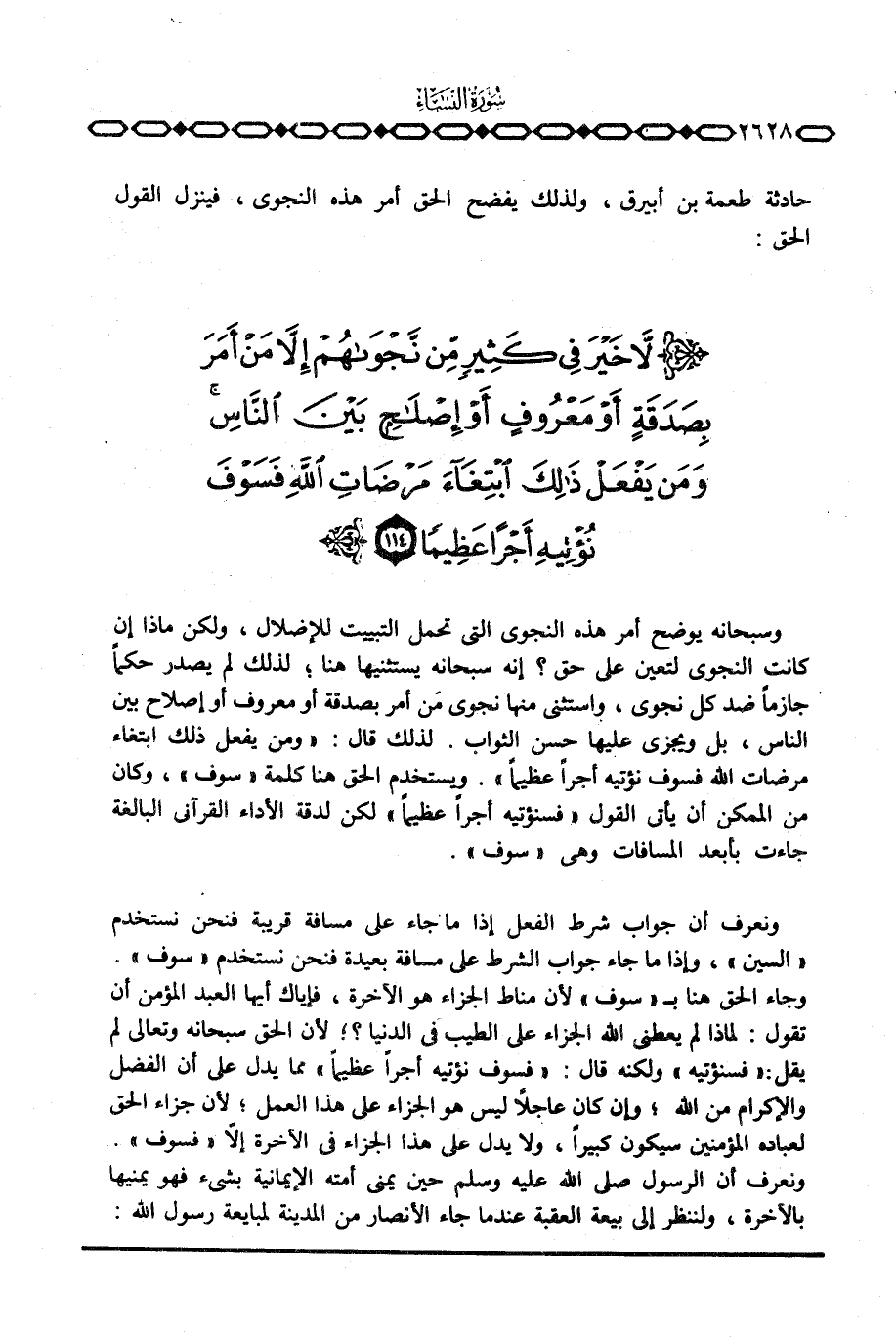 حادثة طعمة بن أبيرق، ولذلك يفضح الحق أمر هذه النجوى، فينزل القول الحق: {لاَّ خَيْرَ فِي كَثِيرٍ مِّن نَّجْوَاهُمْ. .}