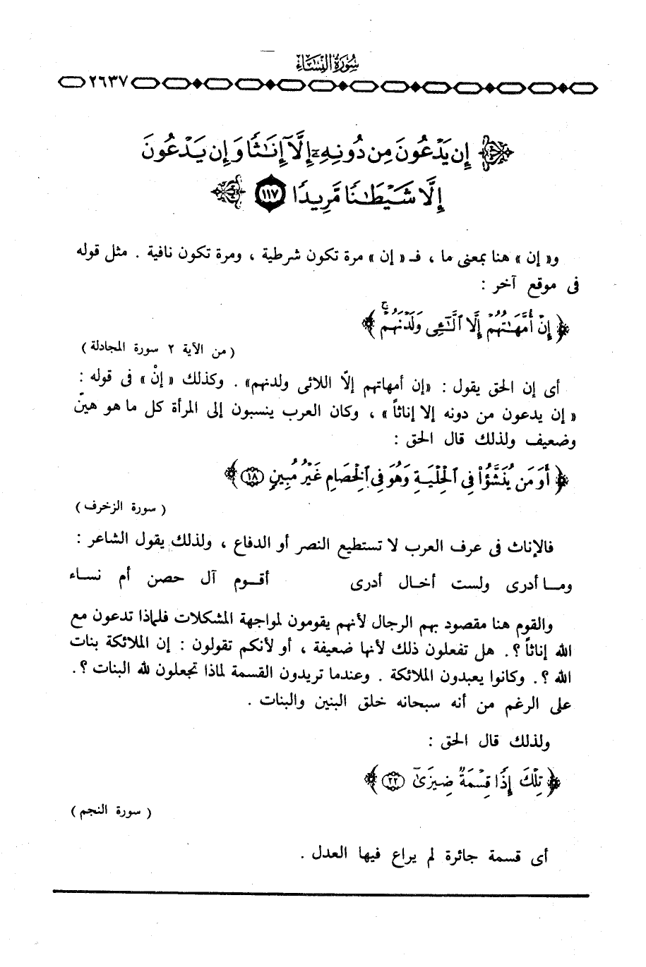 {إِن يَدْعُونَ مِن دُونِهِ إِلاَّ إِنَاثاً ... }