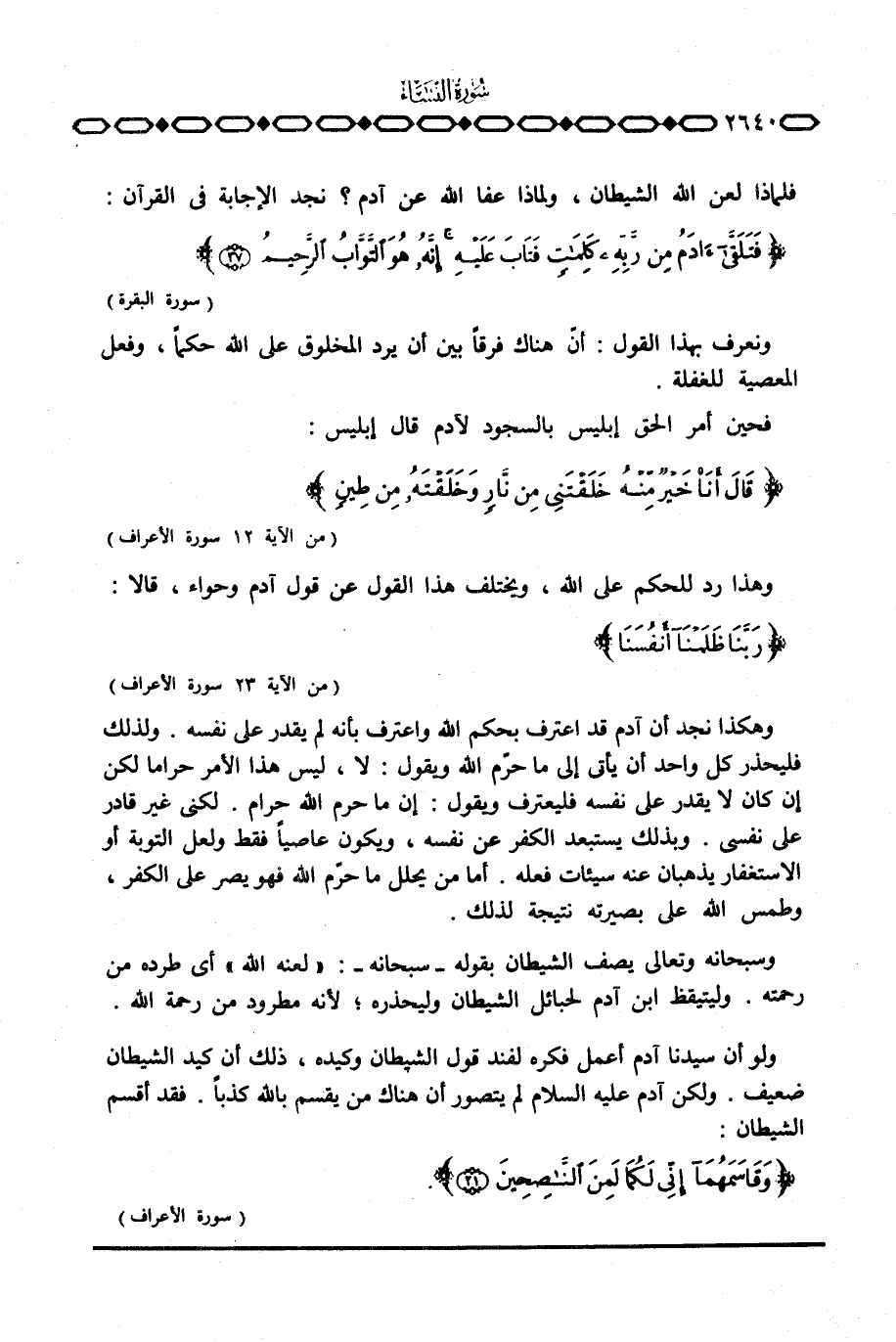 وهكذا نجد أن آدم قد اعترف بحكم الله واعترف بأنه لم يقدر على نفسه. ولذلك فليحذر كل واحد أن يأتي إلى ما حرّم الله ويقول: لا، ليس هذا الأمر حراما لكن إن كان لا يقدر على نفسه فليعترف ويقول: إن ما حرم الله حرام. لكني غير قادر على نفسي. وبذلك يستبعد الكفر عن نفسه، ويكون عاصياً فقط ولعل التوبة أو الاستغفار يذهبان عنه سيئات فعله. أما من يحلل ما حرّم الله فهو يصر على الكفر، وطمس الله على بصيرته نتيجة لذلك.