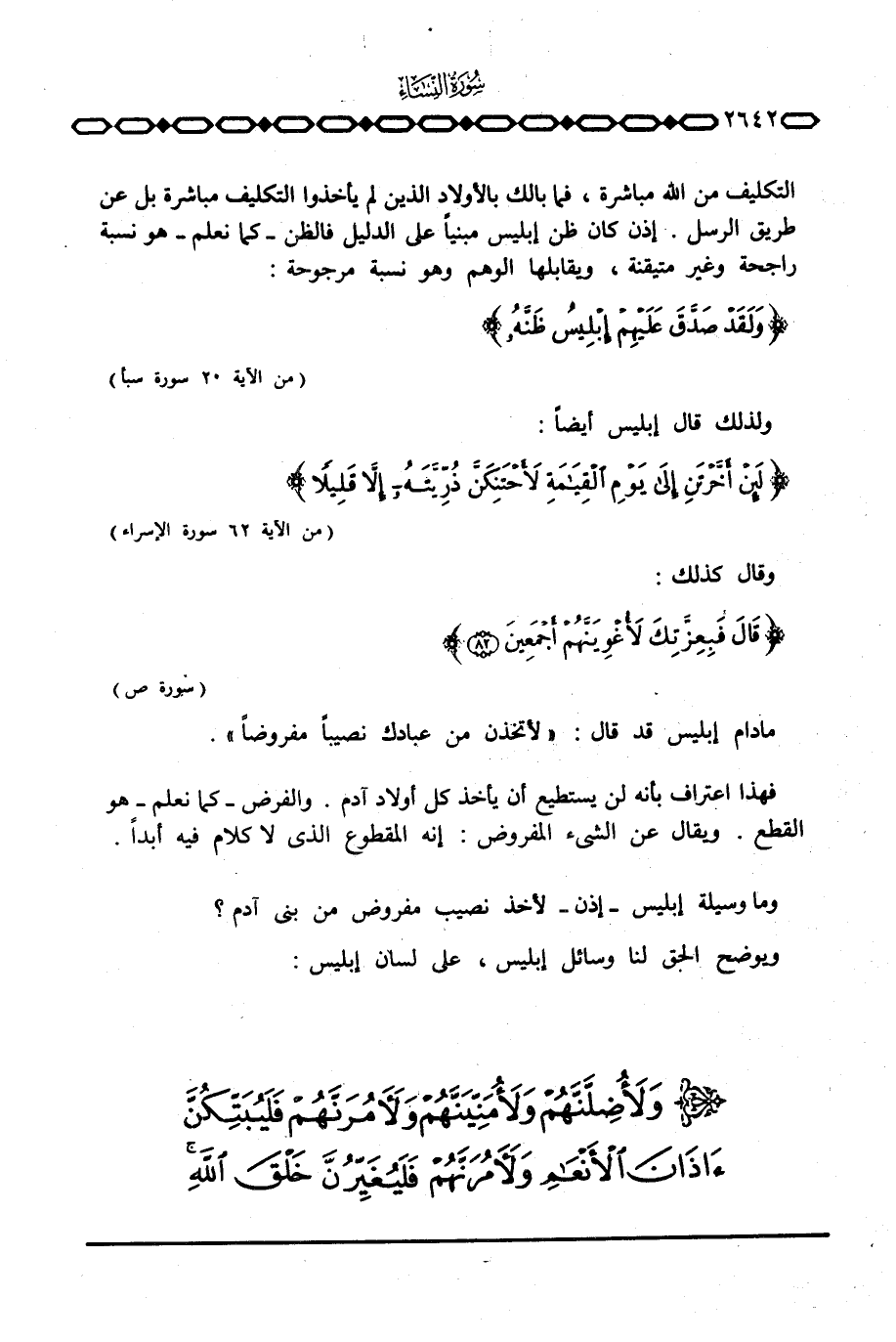 مادام إبليس قد قال: {لأَتَّخِذَنَّ مِنْ عِبَادِكَ نَصِيباً مَّفْرُوضاً} .