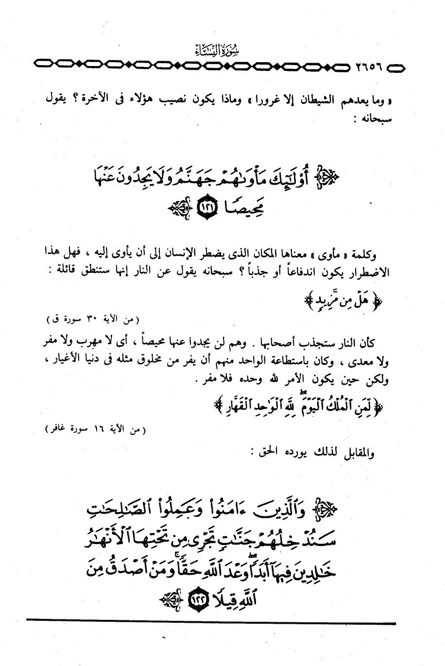 {وَمَا يَعِدُهُمُ الشيطان إِلاَّ غُرُوراً} وماذا يكون نصيب هؤلاء في الآخرة؟ يقول سبحانه: {أولئك مَأْوَاهُمْ جَهَنَّمُ ... }