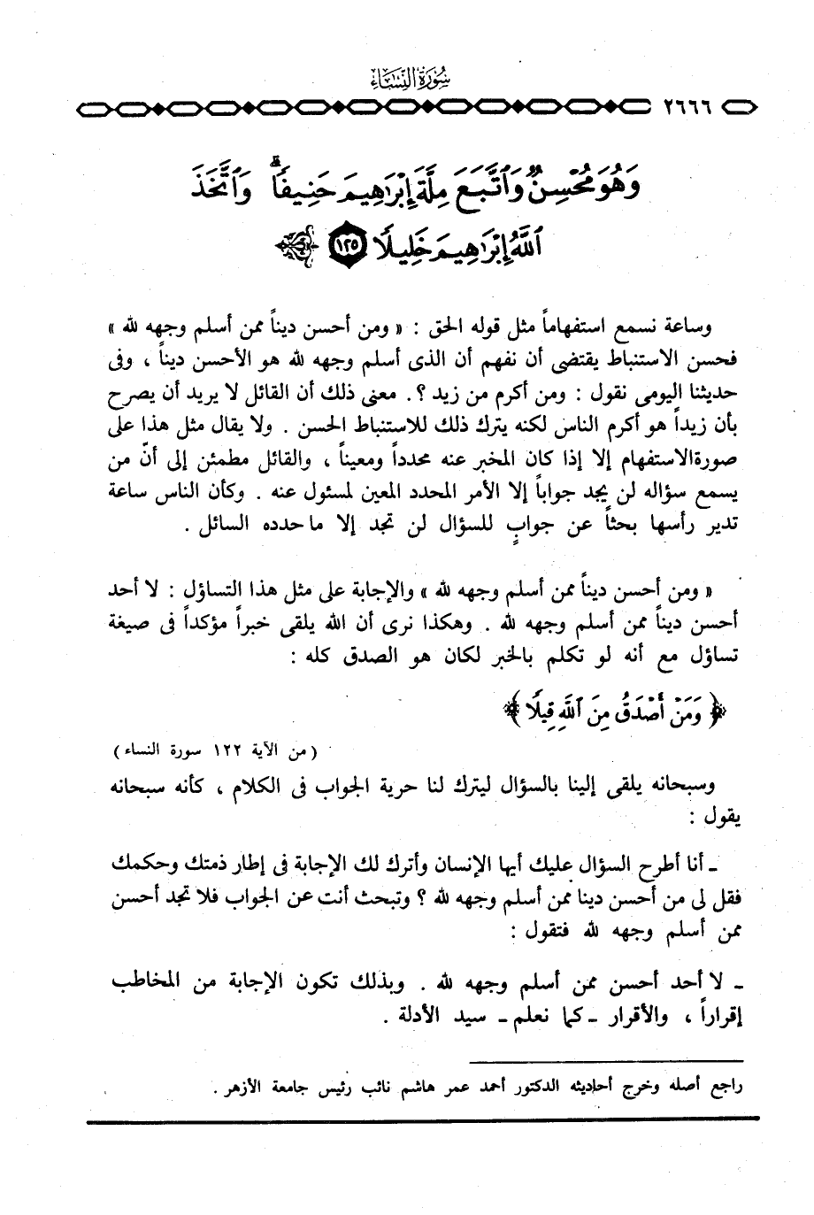 - أنا أطرح السؤال عليك أيها الإنسان وأترك لك الإجابة في إطار ذمتك وحكمك فقل لي من أحسن دينا ممن أسلم وجهه لله؟ وتبحث أنت عن الجواب فلا تجد أحسن ممن أسلم وجهه لله فتقول: