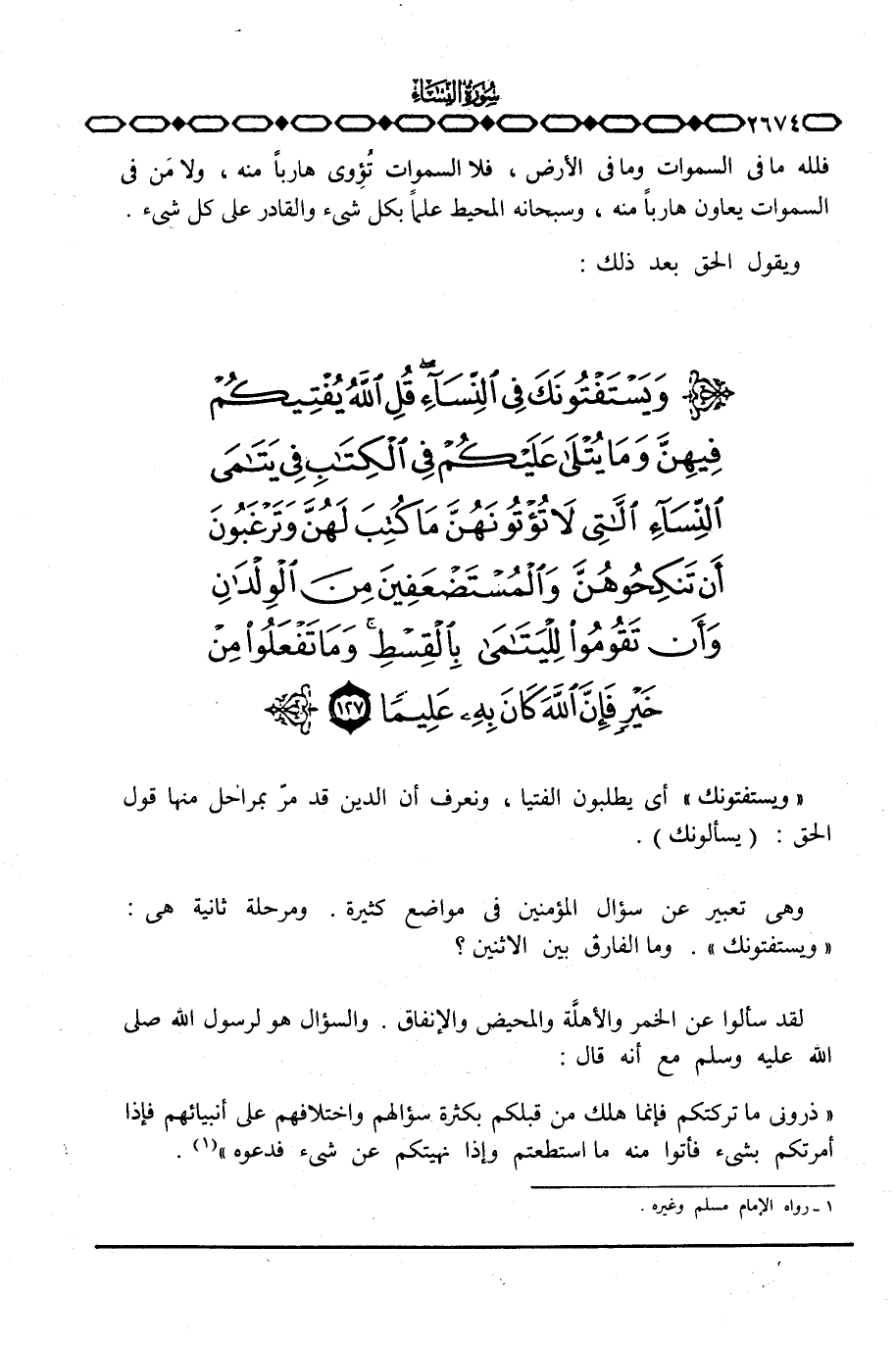 ويقول الحق بعد ذلك: {وَيَسْتَفْتُونَكَ فِي النسآء قُلِ الله ... }