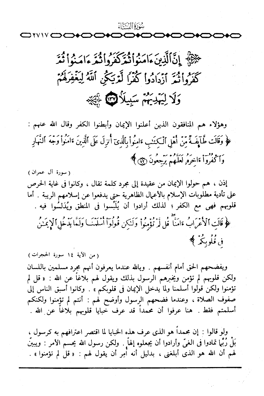 وهؤلاء هم المنافقون الذين أعلنوا الإيمان وأبطنوا الكفر وقال الله عنهم {وَقَالَتْ طَّآئِفَةٌ مِّنْ أَهْلِ الكتاب آمِنُواْ بالذي أُنْزِلَ عَلَى الذين آمَنُواْ وَجْهَ النهار واكفروا آخِرَهُ لَعَلَّهُمْ يَرْجِعُونَ} [آل عمران: 72]