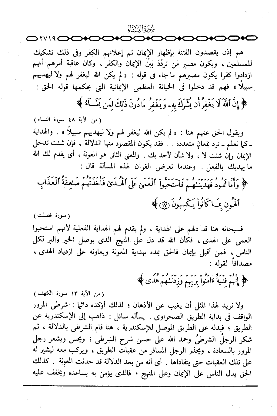 هم إذن يقصدون الفتنة بإظهار الإيمان ثم أعلانهم الكفر وفي ذلك تشكيك للمسلمين، ويكون مصير مَن تردّدَ بَيْنَ الإيمان والكفر، وكان عاقبة أمرهم أنهم ازدادوا كفرا يكون مصيرهم ما جاء في قوله: {لَّمْ يَكُنِ الله لِيَغْفِرَ لَهُمْ وَلاَ لِيَهْدِيَهُمْ سَبِيلاً} فهم قد دخلوا في الخيانة العظمى الإيمانية التي يحكمها قوله الحق: {إِنَّ الله لاَ يَغْفِرُ أَن يُشْرَكَ بِهِ وَيَغْفِرُ مَا دُونَ ذَلِكَ لِمَن يَشَآءُ} [النساء: 48]
