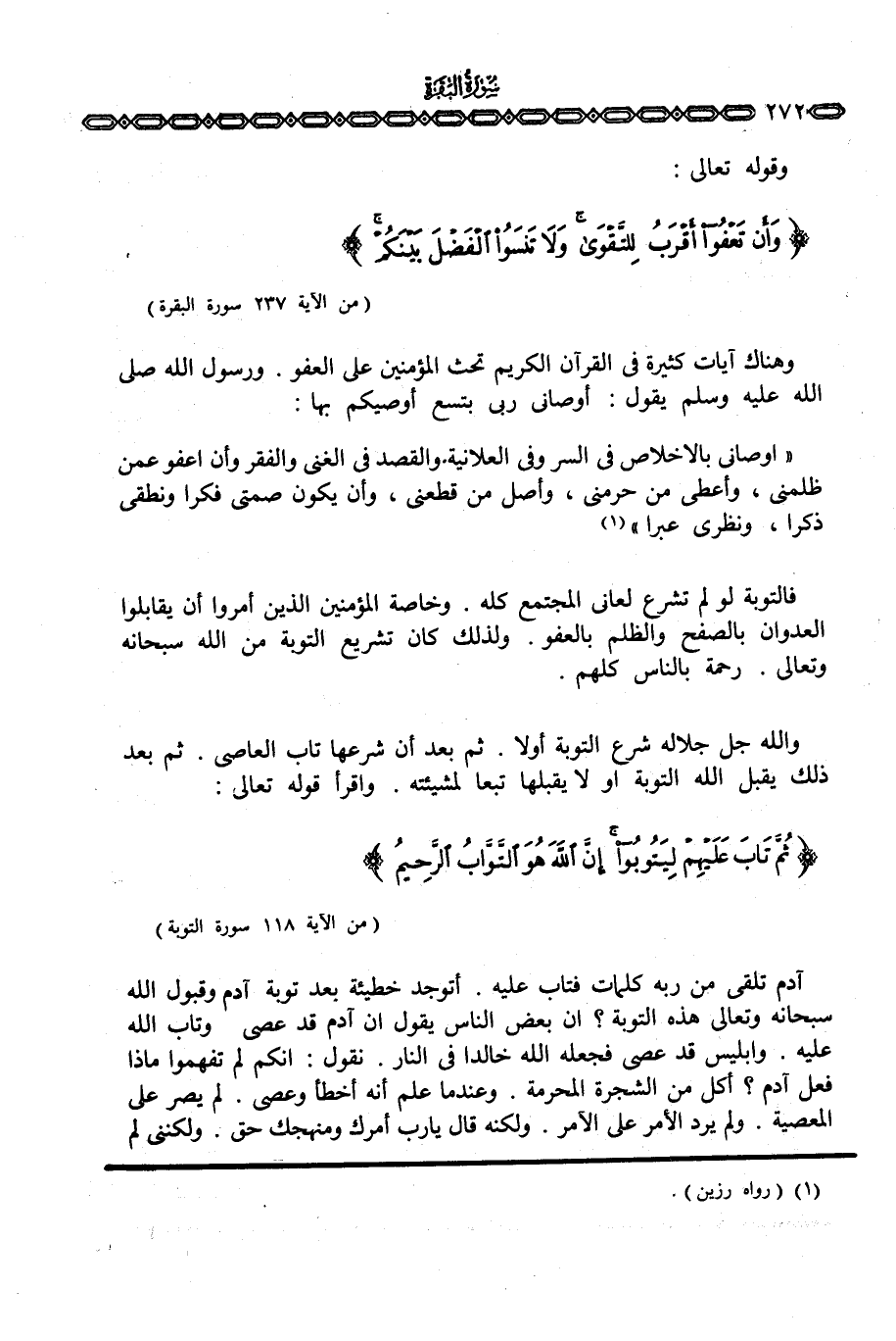 وقوله تعالى: {وَأَن تعفوا أَقْرَبُ للتقوى وَلاَ تَنسَوُاْ الفضل بَيْنَكُمْ} [البقرة: 237]