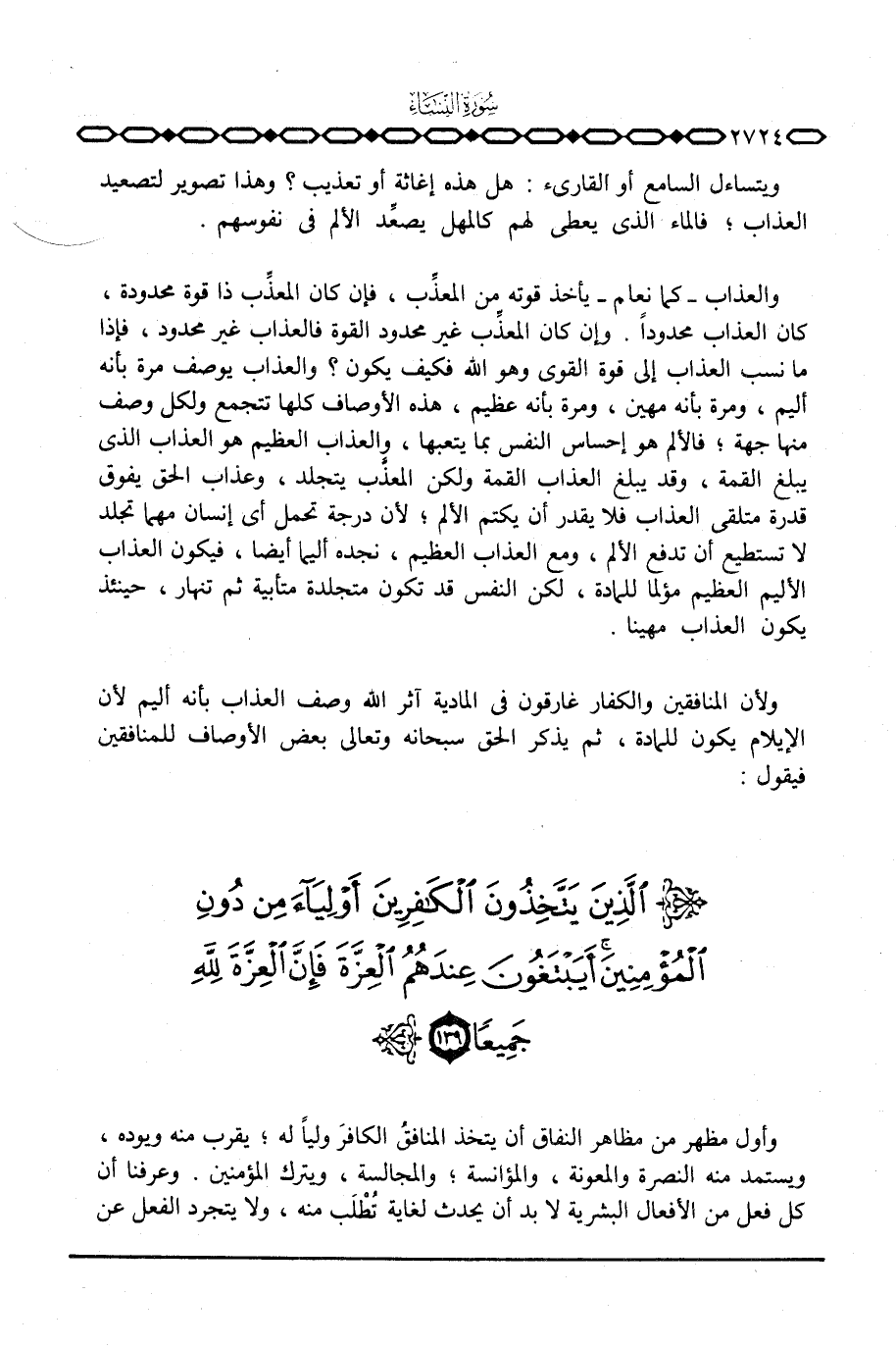 وأول مظهر من مظاهر النفاق أن يتخذ المنافقُ الكافرَ ولياً له؛ يقرب منه ويوده، ويستمد منه النصرة والمعونة، والمؤانسة؛ والمجالسة، ويترك المؤمنين. وعرفنا أن كل فعل من الأفعال البشرية لا بد أن يحدث لغاية تُطْلَب منه، ولا يتجرد الفعل عن