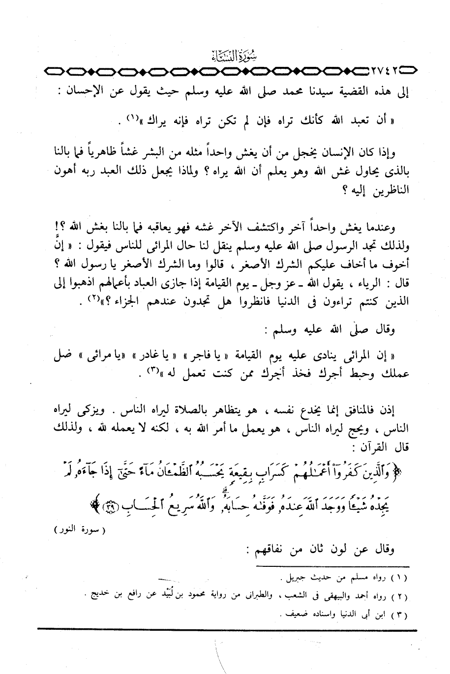 إلى هذه القضية سيدنا محمد صَلَّى اللَّهُ عَلَيْهِ وَسَلَّم َ حيث يقول عن الإحسان: