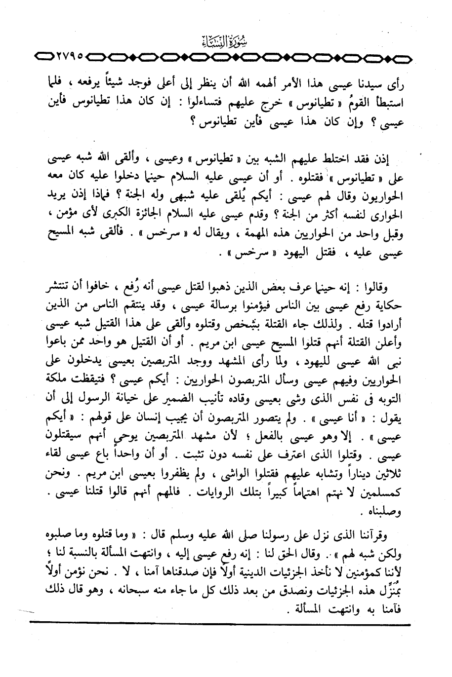 فألقى شبه المسيح عيسى عليه، فقتل اليهود «سرخس» .