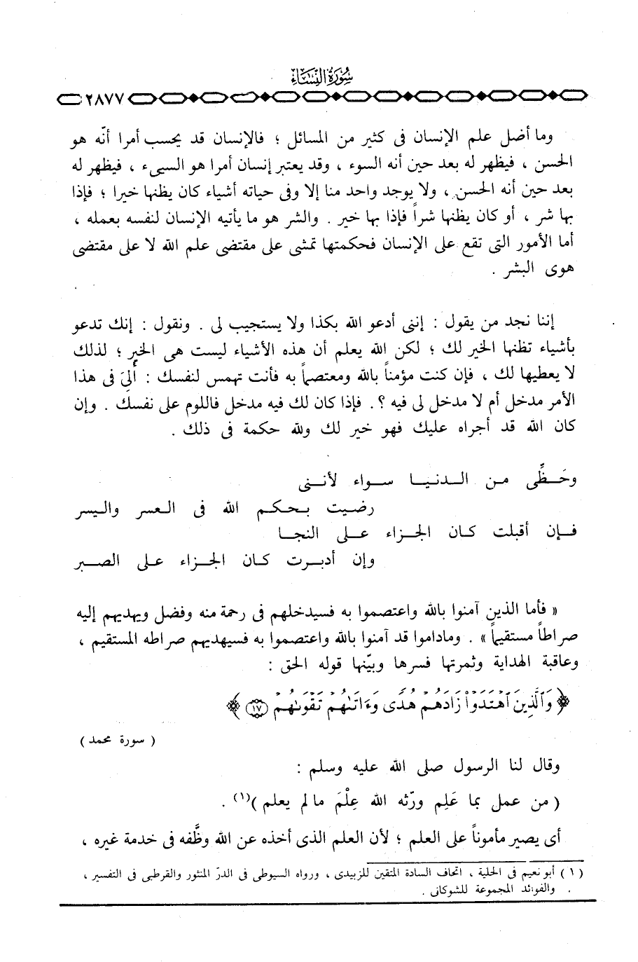 وما أضل علم الإنسان في كثير من المسائل؛ فالإنسان قد يحسب أمرا أنّه هو الحسن، فيظهر له بعد حين أنه السوء، وقد يعتبر إنسان أمرا هو السيئ، فيظهر له بعد حين أنه الحسن، ولا يوجد واحد منا إلا وفي حياته أشياء كان يظنها خيرا؛ فإذا بها شر، أو كان يظنها شراً فإذا بها خير. والشر هو ما يأتيه الإنسان لنفسه بعمله، أما الأمور التي تقع على الإنسان فحكمتها تمشي على مقتضى علم الله لا على مقتضى هوى البشر.