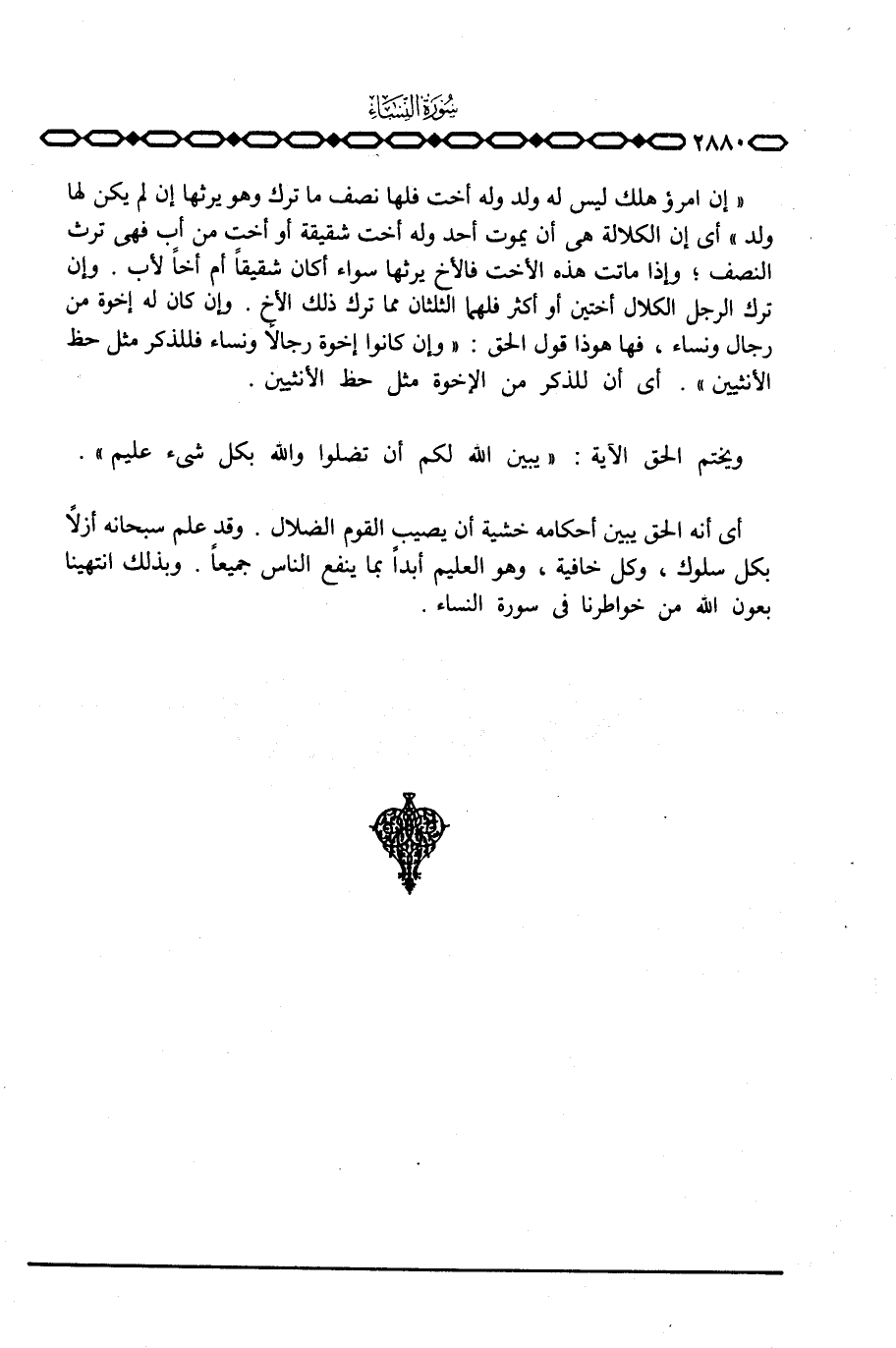 أي أنه الحق يبين أحكامه خشية أن يصيب القوم الضلال. وقد علم سبحانه أزلاً بكل سلوك، وكل خافية، وهو العليم أبداً بما ينفع الناس جميعاً. وبذلك انتهينا بعون الله من خواطرنا في سورة النساء.